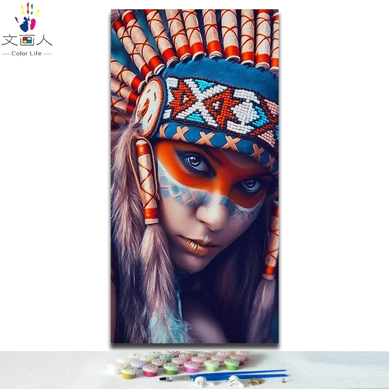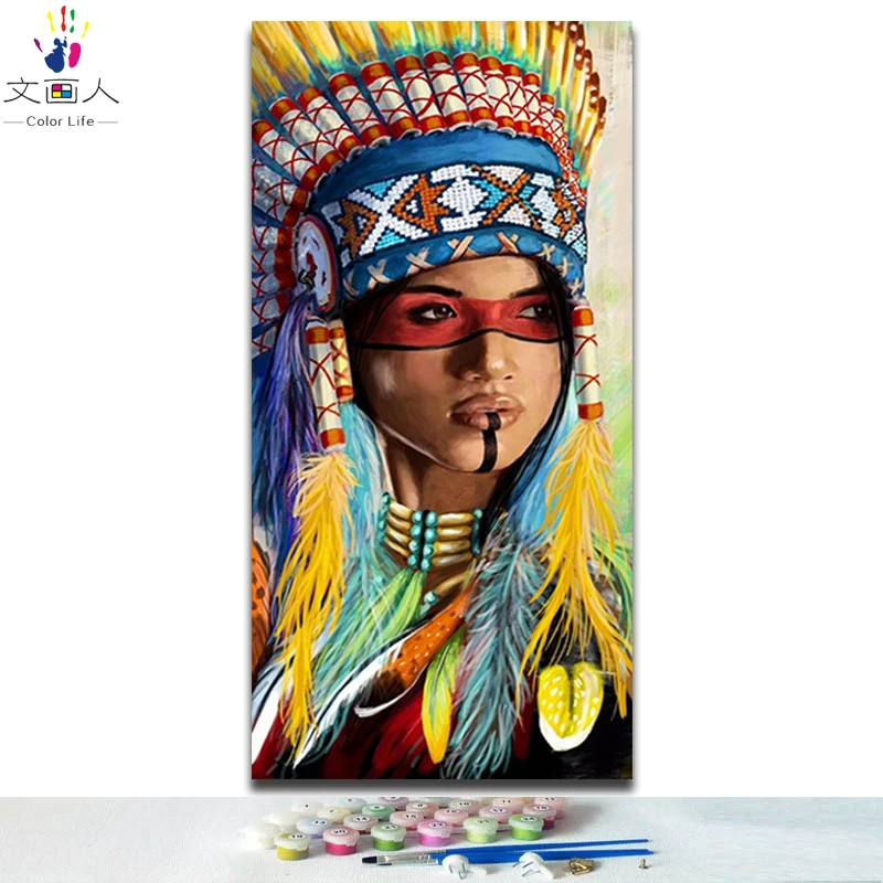 Special Offer Diy kolorowanie malowanie według wzoru tradycyjne klasyczne indianie figury zdjęcia kolorowanki obrazy według numerów dekoracja ścienna do pokoju Discount 0% Today!