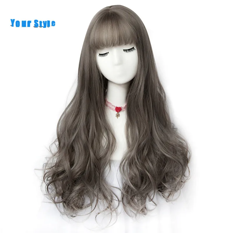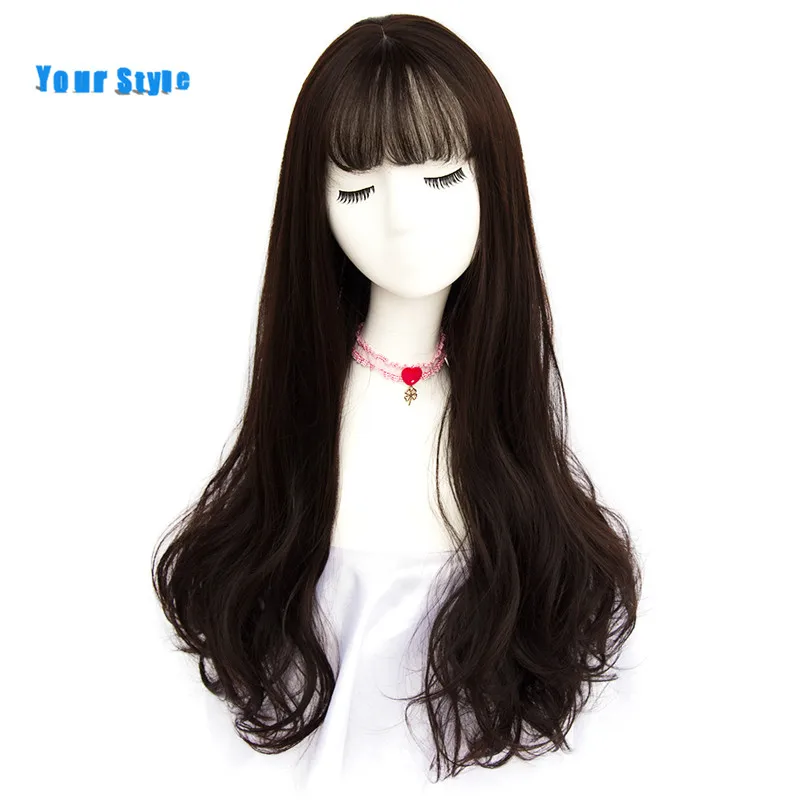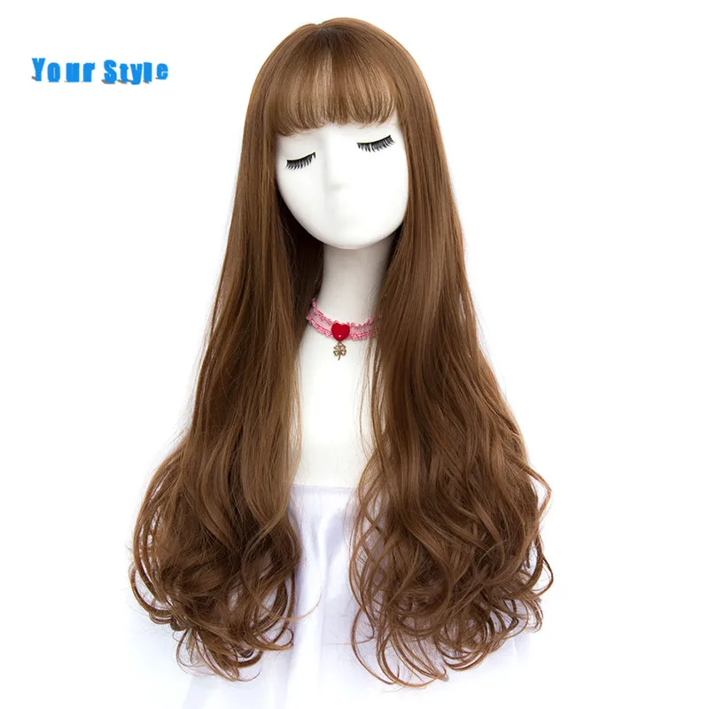 Product Name: Twój styl 42 kolory syntetyczne długie peruki z grzywką dla czarnych kobiet miód falista peruka z naturalnych włosów darmowa peruka Cap