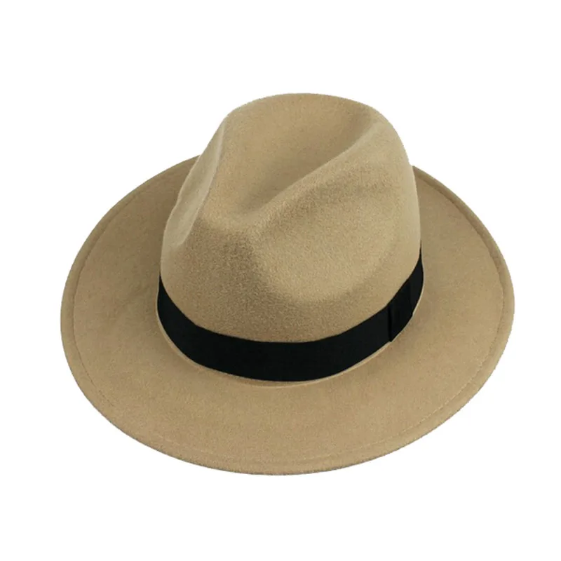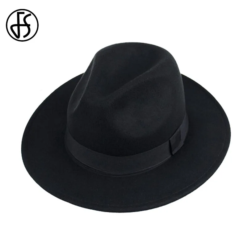 Product Name: FS czarny filc kapelusze wełniane dla mężczyzn Fedoras kobieta szerokie rondo Trilby kapelusze Panama ojciec chrzestny Vintage jesień zima Jazz melonik czapki damskie