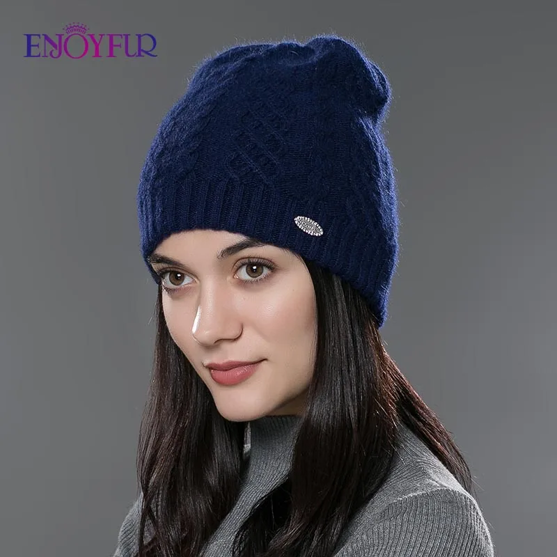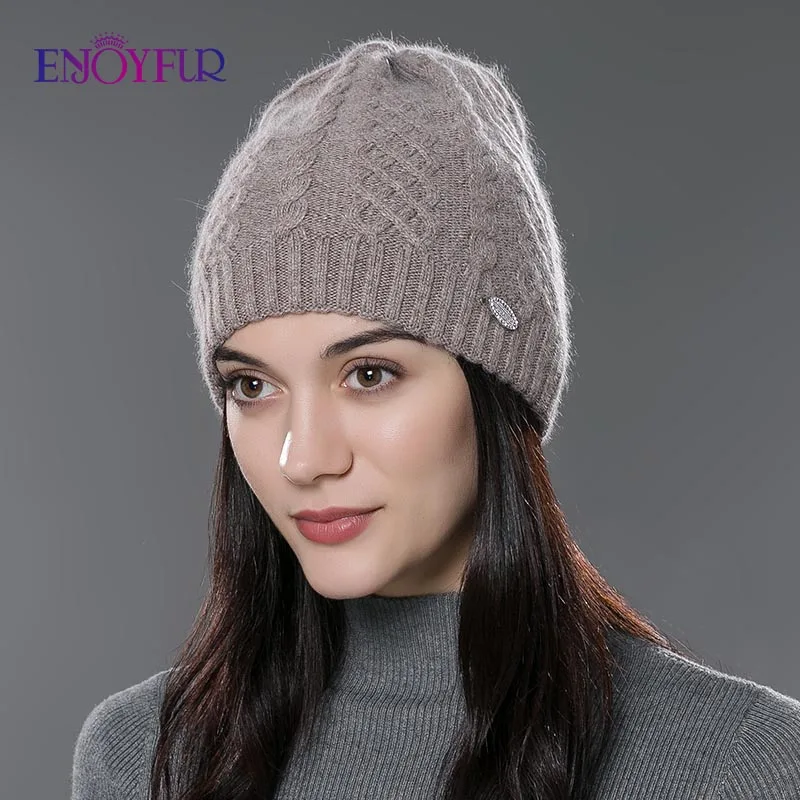 Special Offer ENJOYFUR kobiety jesienne czapki zimowe rozciągliwa, dzianinowa wełna bawełniana Gorro Solid Multicolors czapki czapka High end śliczne czapki na co dzień Discount 30% Today!