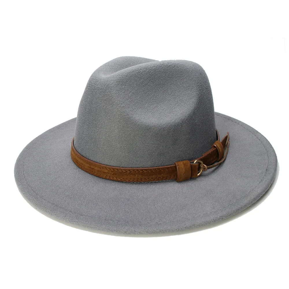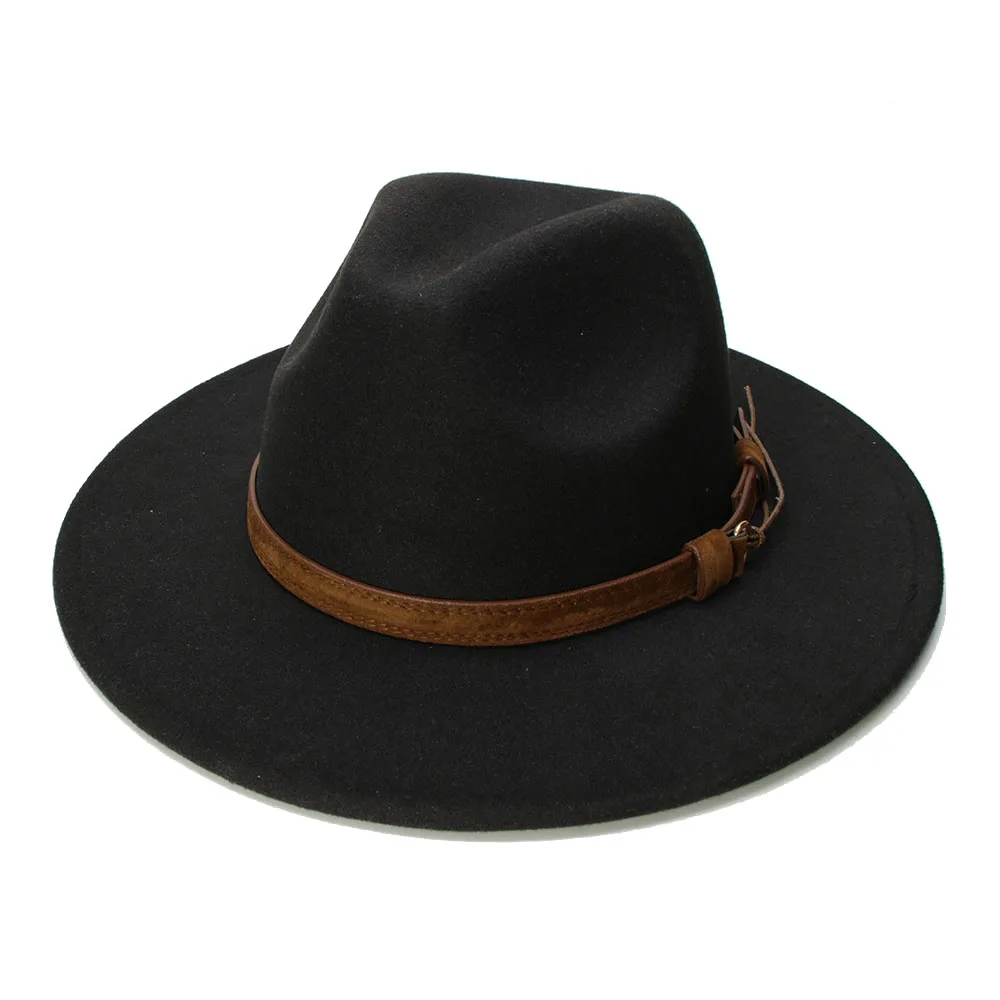 Product Name: LUCKYLIANJI Retro dziecko dziecko w stylu Vintage 100% wełna szeroki czapka z rondem Fedora Panama Jazz melonik skórzany pasek (54 cm dostosowane)