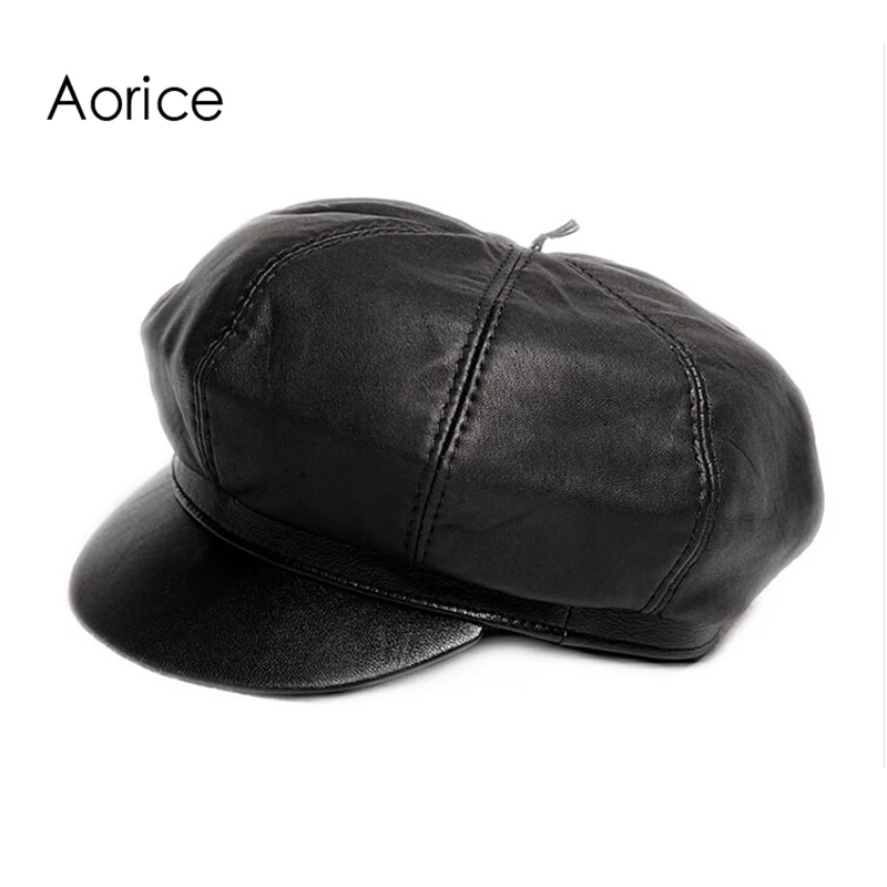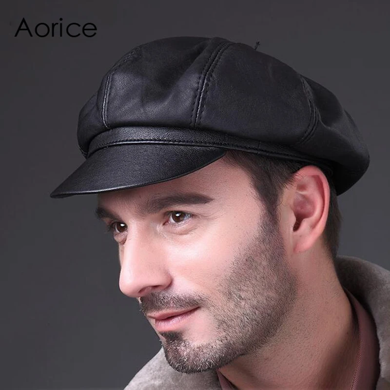 Special Offer Aorice prawdziwa miękka skóra jazdy płaska czapka 2017 jesień zima mężczyzna stylowa moda na zewnątrz Sport ciepła czapka czarna HL010 Discount 40% Today!