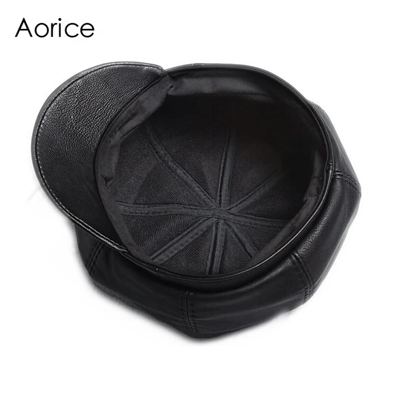 Product Name: Aorice prawdziwa miękka skóra jazdy płaska czapka 2017 jesień zima mężczyzna stylowa moda na zewnątrz Sport ciepła czapka czarna HL010