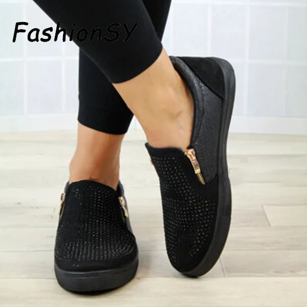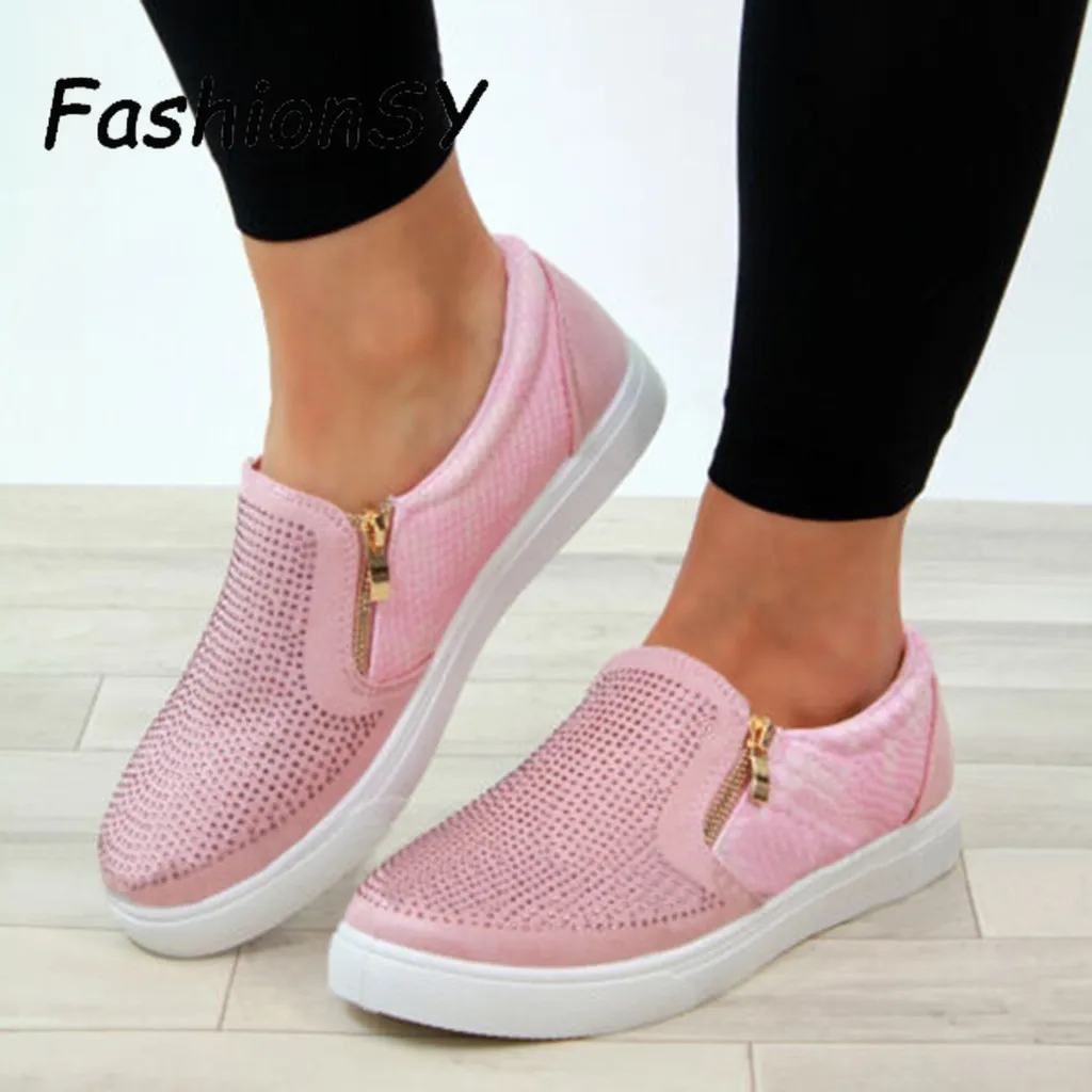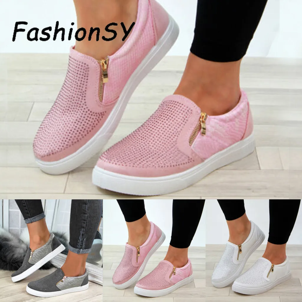 Special Offer Damskie letnie trampki zapinane na suwak na płaskie buty oddychające gumki na co dzień płaskie nadaje się do szerokich nogawek drążą buty damskie Discount 50% Today!