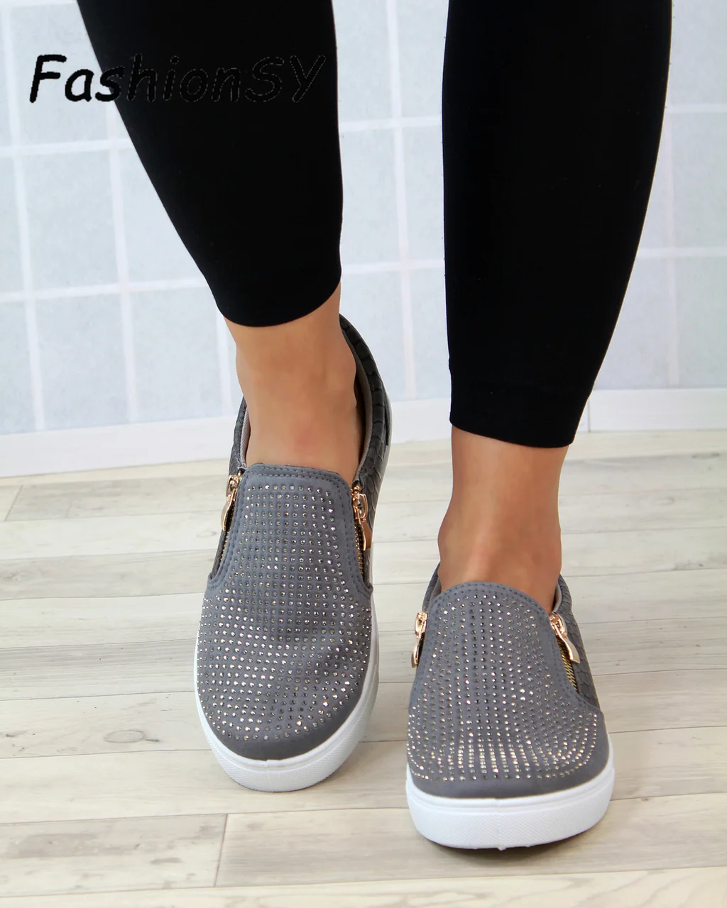 Product Name: Damskie letnie trampki zapinane na suwak na płaskie buty oddychające gumki na co dzień płaskie nadaje się do szerokich nogawek drążą buty damskie