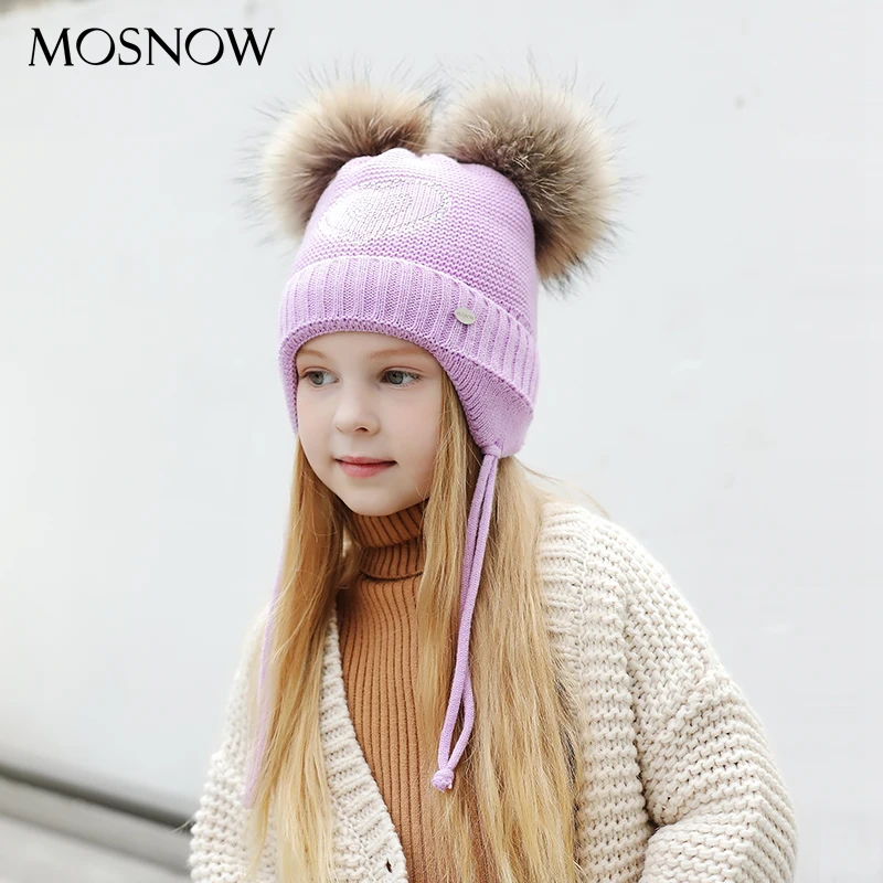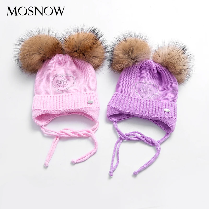 Special Offer W kształcie serca dżetów czapki zimowe dla dziewczynek grube dzianiny bawełniane uszy kapelusz dziewczyna pompon czapki dzieci czapki # MZ843 Discount 50% Today!