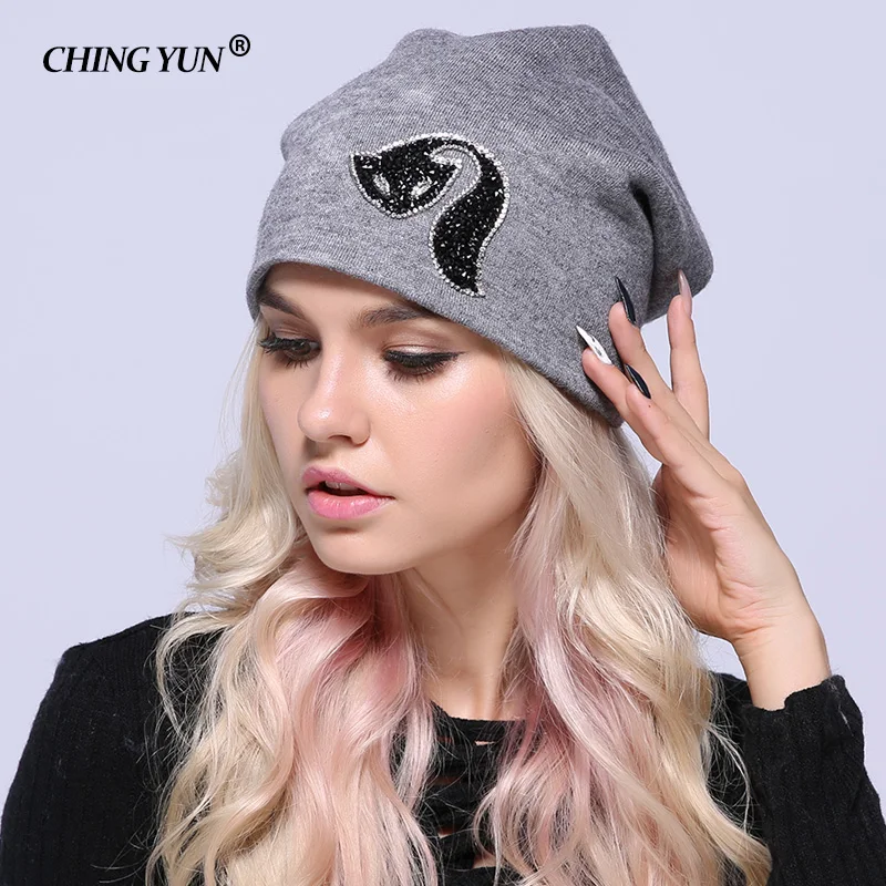 Special Offer Nowe zimowe damskie czapki z dzianiny lady ciepłe czapki Diamond Fox Solid Color grubsze dziewczyny czapka śliczne wysokiej jakości wełny kapelusz damski 2018 Discount 32% Today!