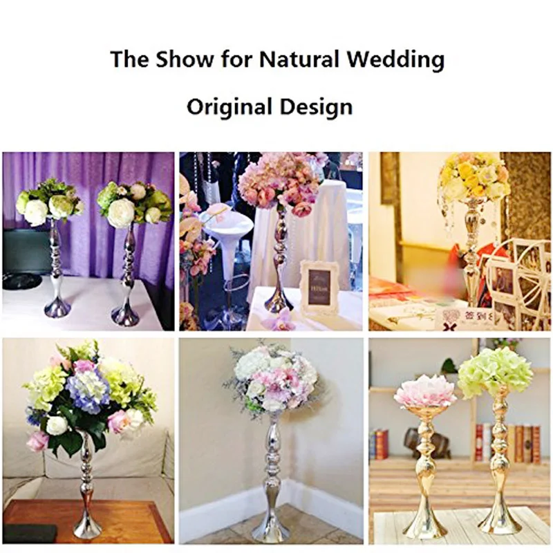 Special Offer Srebrne metalowe świeczniki 50 cm 32 cm stoją kwiaty wazon świecznik jako drogowe świeczniki ślubne ozdoby na środek stołu FEW0066 Discount 35% Today!