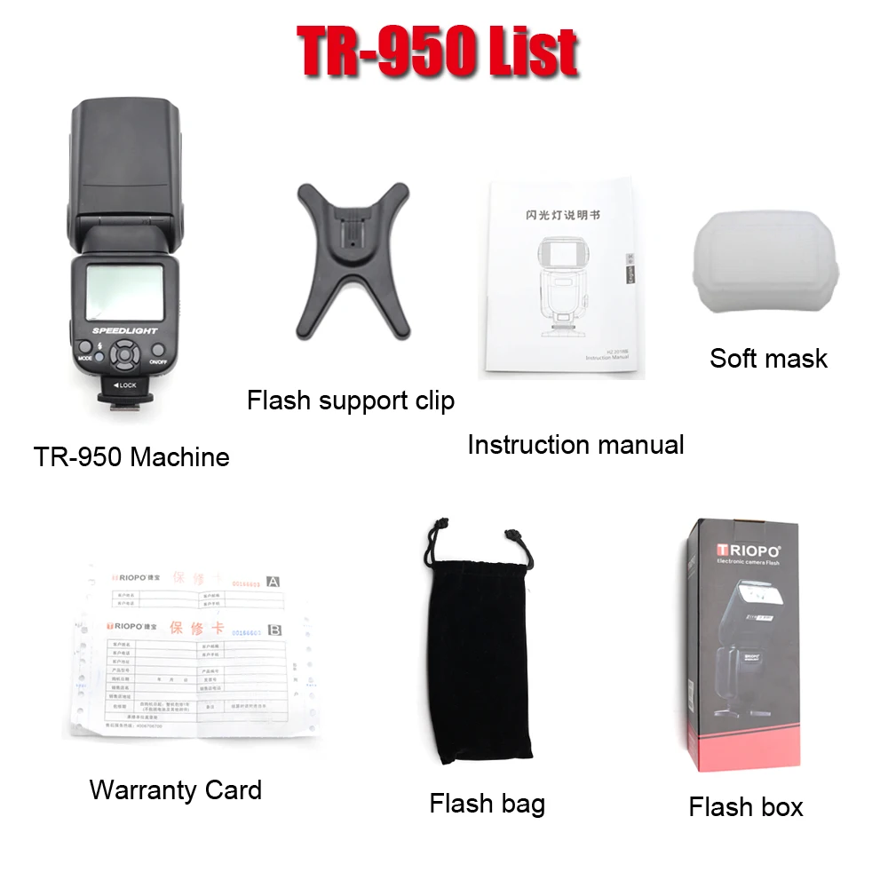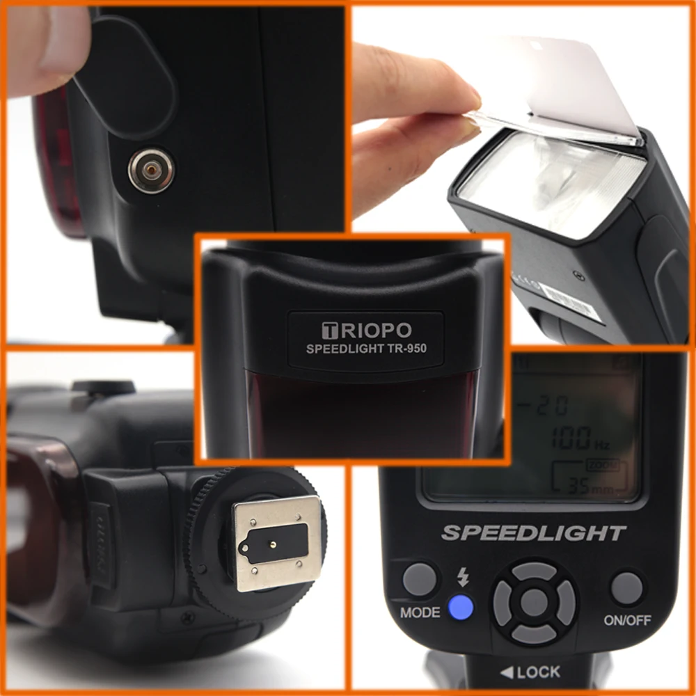 Product Name: Triopo TR 950 latarka lampy błyskowej Speedlite uniwersalny dla Fujifilm produktu firmy Olympus Nikon Canon 650D 550D 450D 1100D 60D 7D 5D lustrzanki cyfrowe