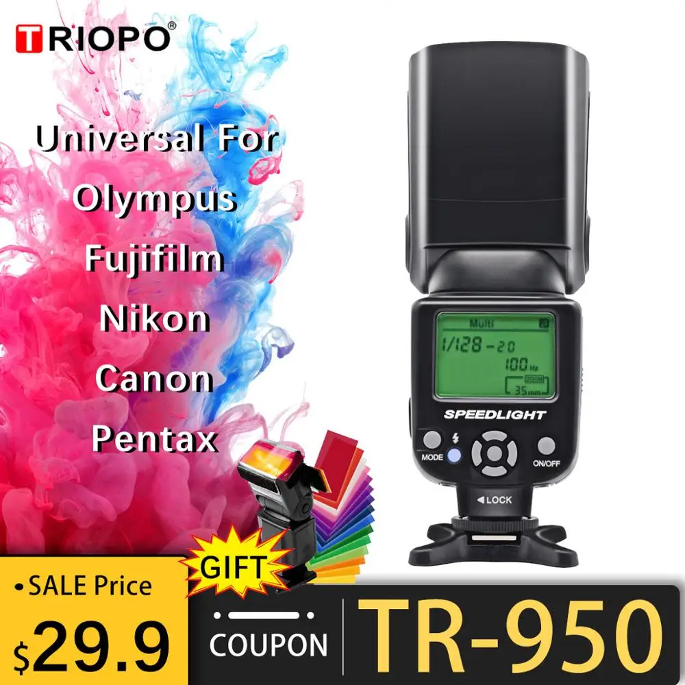 Special Offer Triopo TR 950 latarka lampy błyskowej Speedlite uniwersalny dla Fujifilm produktu firmy Olympus Nikon Canon 650D 550D 450D 1100D 60D 7D 5D lustrzanki cyfrowe Discount 35% Today!