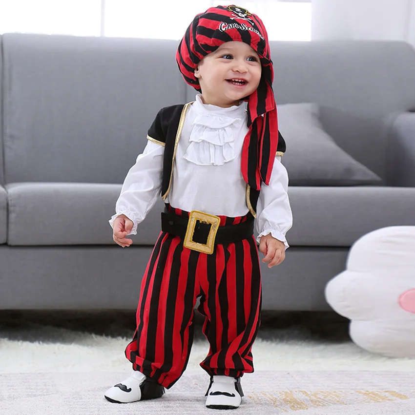 Special Offer Kostiumy na Halloween nowonarodzone chłopcy, dziewczynki, śpioszki + czapka + kamizelka piracka odzież zestaw Halloween średniowieczny karnawał urodziny prezent Discount 39% Today!