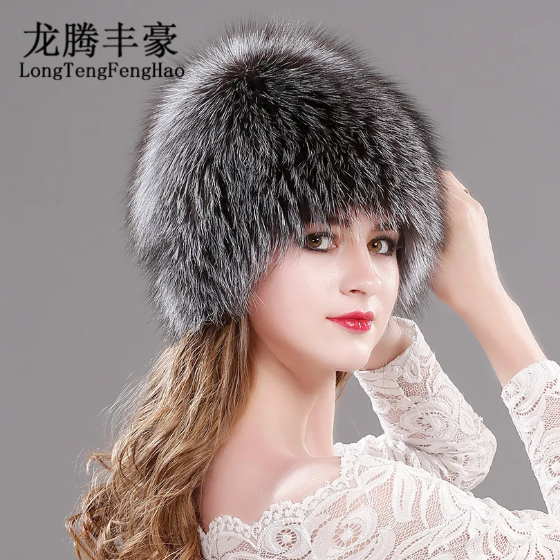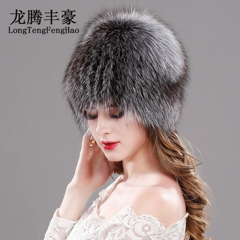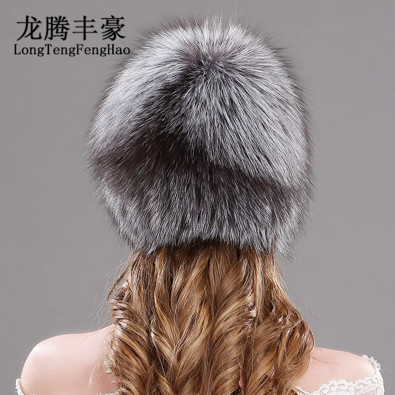 Product Name: Lis naturalny futrzane czapki dla kobiet prawdziwe futro czapki czapka z dzianiny czapki rosyjski zima gruba ciepła moda czapki Silver Fox futrzane czapki lady
