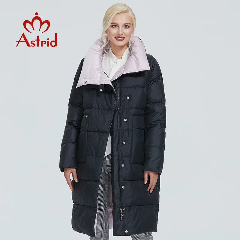Special Offer 2019 Astrid kurtka zimowa kobiety kontrast kolor długie grube bawełniane ubrania z czapką i zamkiem błyskawicznym ciepły płaszcz kobiety parka AR 7040 Discount 60% Today!