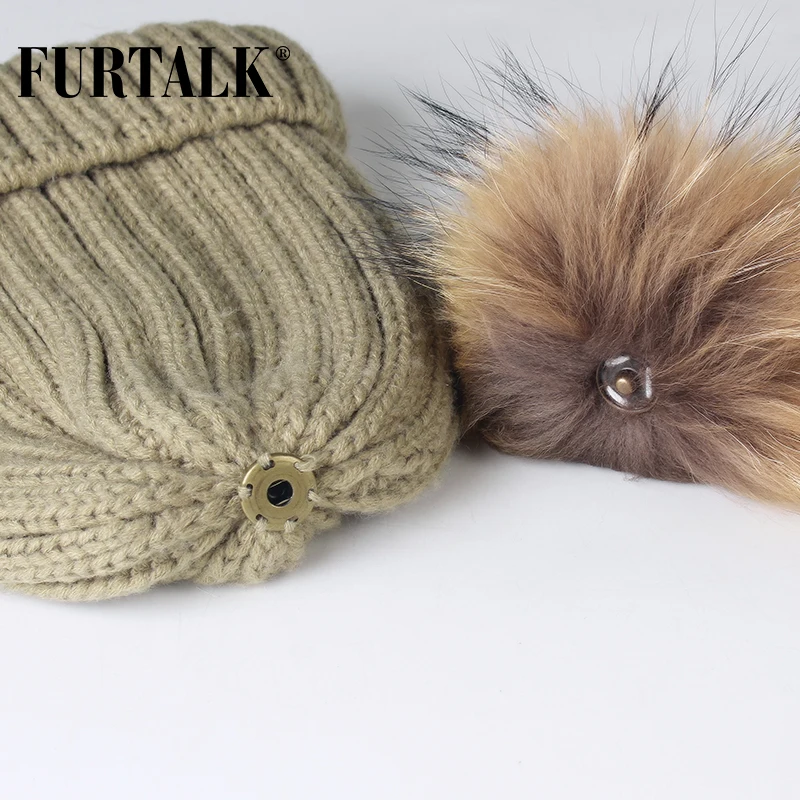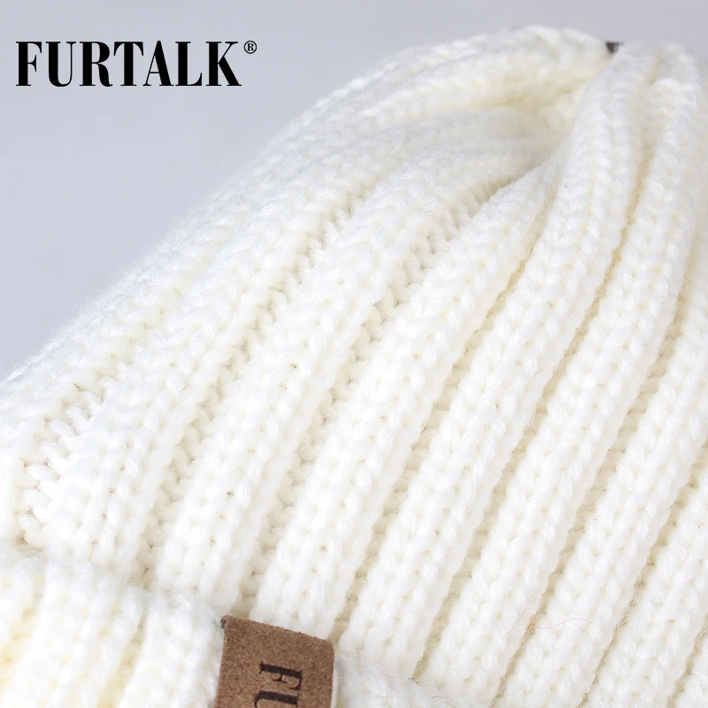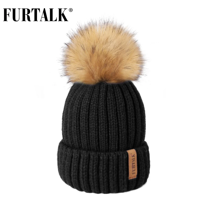 Special Offer FURTALK czapka typu beanie czapki zimowe dla kobiet czapka z dzianiny pompon ze sztucznego futra z podszyty polarem czapka zimowa dla kobiet Skullies Black Grey Discount 60% Today!