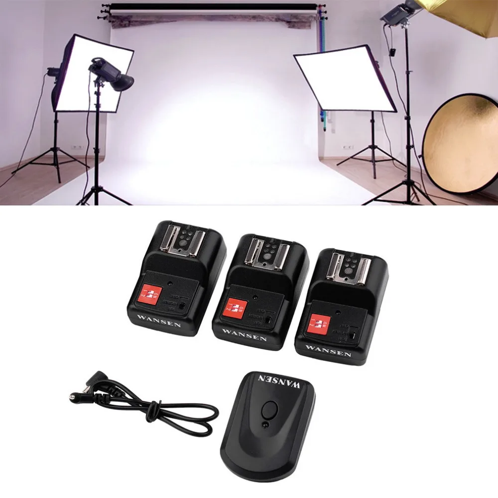 Special Offer Uniwersalny 4 kanały nadajnik radio bezprzewodowe wyzwalacz lampy błyskowej zestaw z 3 PT 04GY odbiorniki kamera PC przewód do synchronizacji dla błyskanie studyjne Discount 30% Today!