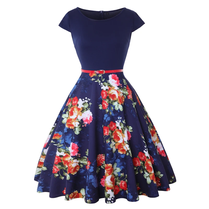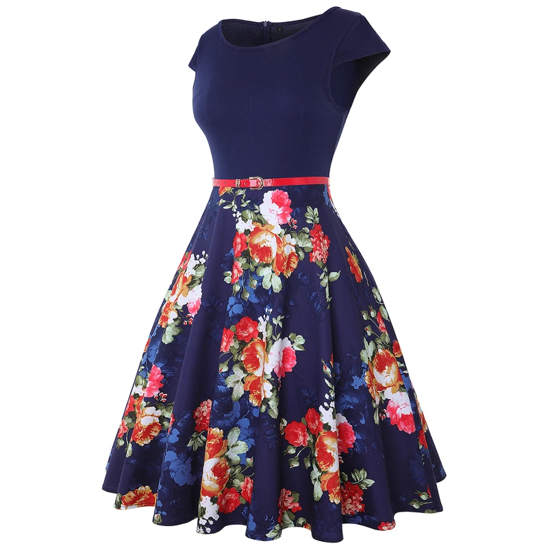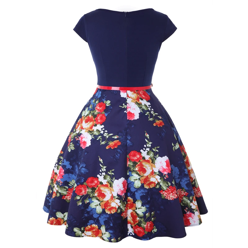 Product Name: OTEN 4XL Plus rozmiar lato kobiety w stylu Vintage Retro 50s krótki kimonowy rękaw O szyi kwiatowy kwiat nadruk z cytryną Rockabilly pin up sukienka łyżwiarki