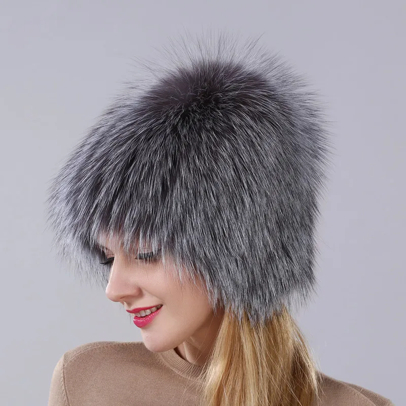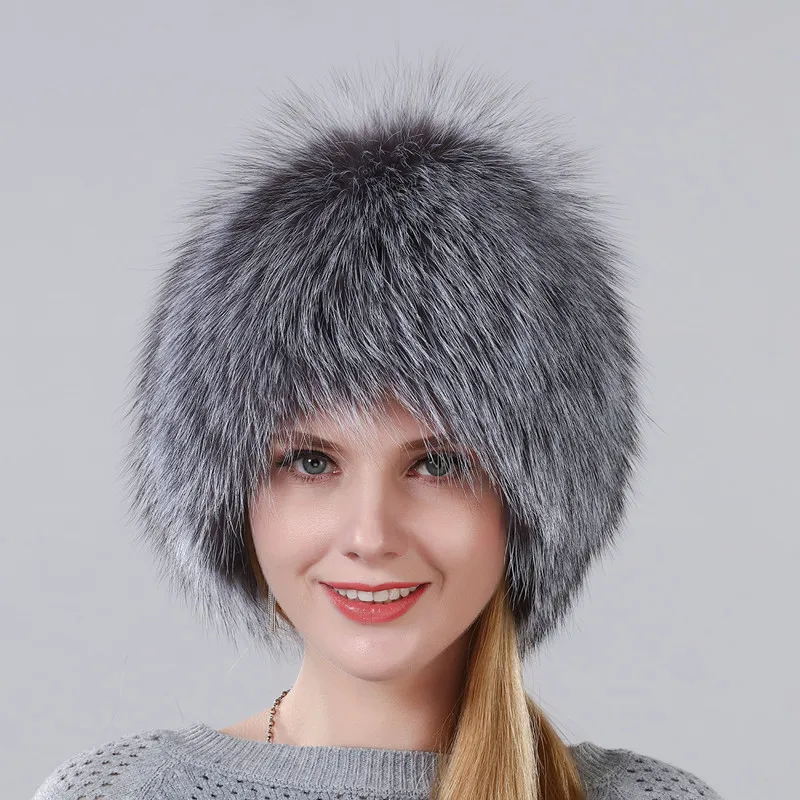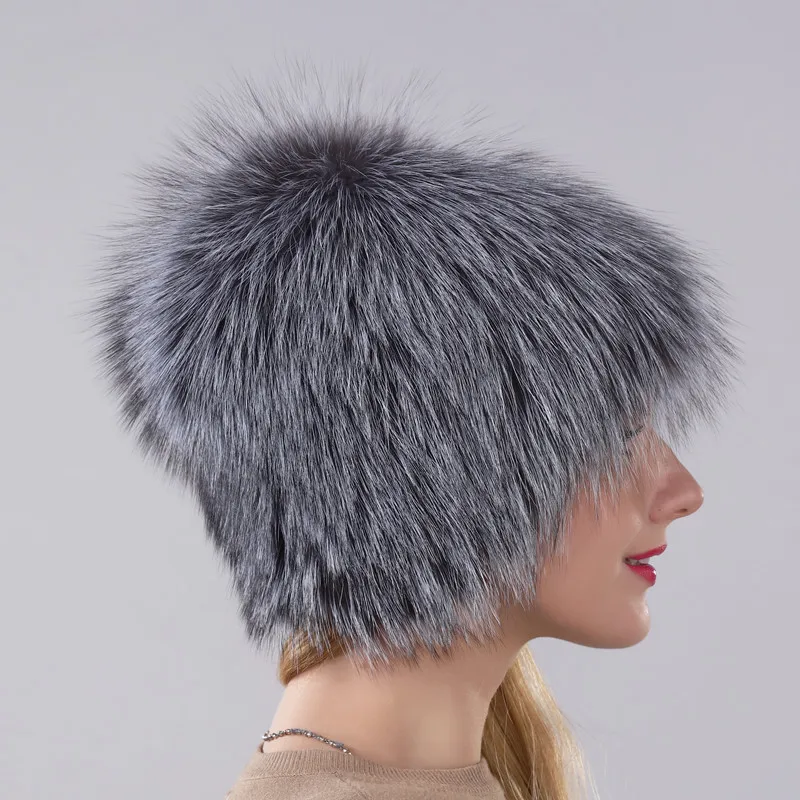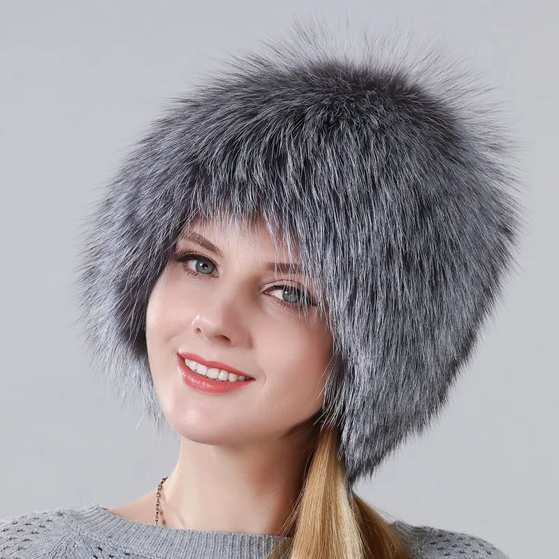 Product Name: Gorąca sprzedaż czapka zimowa 100% prawdziwe naturalny Silver Fox Fur kobiety z dzianiny futro Cap kobiety kapelusz futra lisa kapelusz kobiece ucho ciepła zima musi