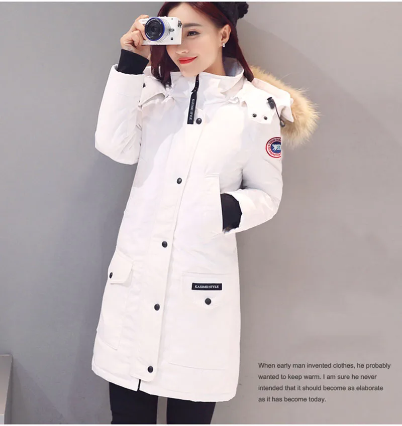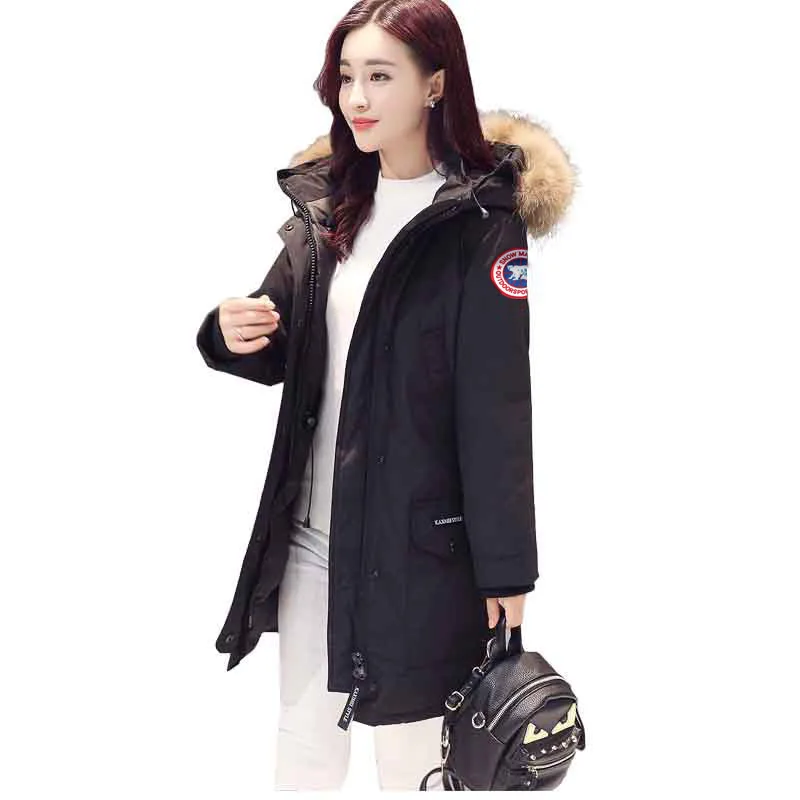 Product Name: Kanada marki parki zimowe kurtka i płaszcz futro kołnierz czarny gruby długi płaszcz z kapturem wiatrówka płaszcze moda na co dzień ciepła odzież wierzchnia