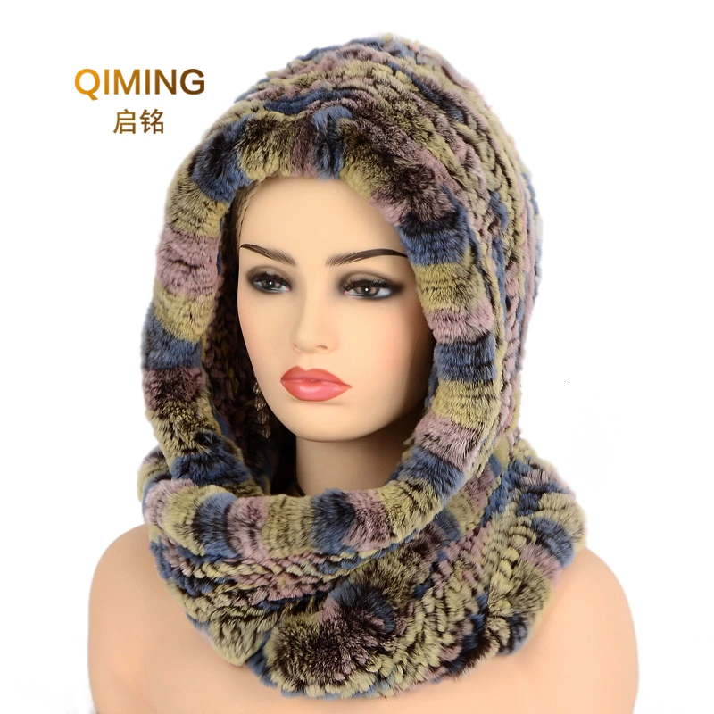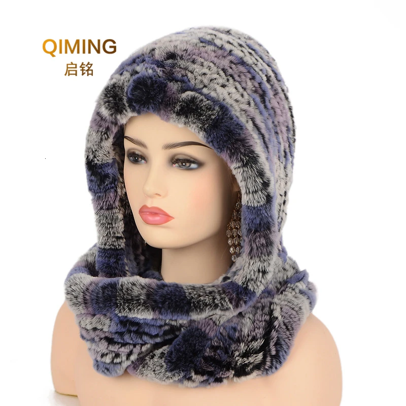 Special Offer Kapelusz kobiety nowy dzianiny prawdziwe futro królika rex kapelusz szalik z kapturem czapki zimowe dla kobiety czapka ciepłe futro naturalne kapelusz z szaliki Discount 0% Today!