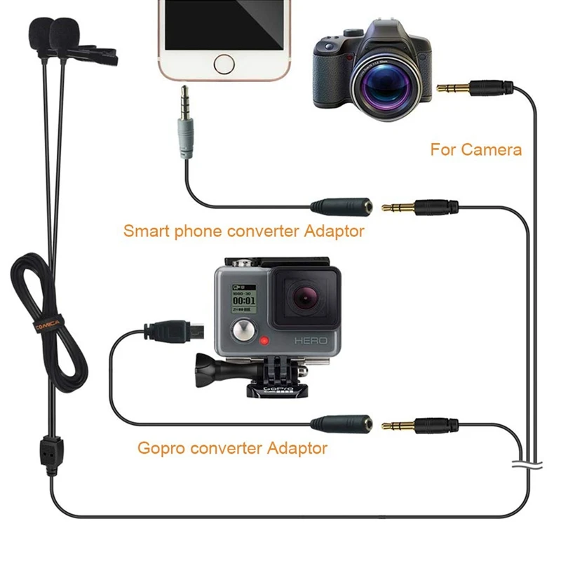 Product Name: Comica CVM D02B podwójna głowica Lavalier klapa mikrofonu do aparatu Canon Nikon Sony A7 A6300 dla Iphone 6 6Plus Smartphone dla G