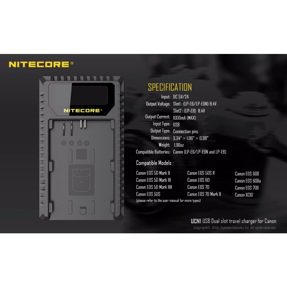 Product Name: Nitecore UCN1 cyfrowy USB ładowarka do Canona EOS LP E6 LP E6N i LP E8 baterie do Canon 6D 7D 5DS 60D do aparatu