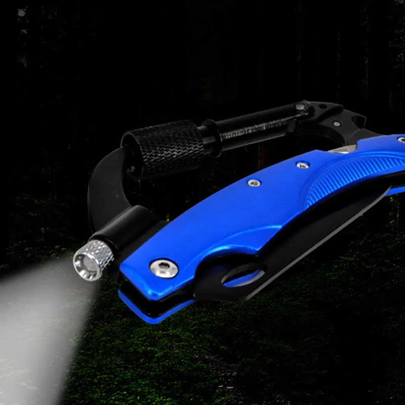 Product Name: Nowości kieszonkowy aluminiowy karabińczyk ze stali nierdzewnej klip nóż z LED Light Hook brelok Outdoor Sports narzędzia samoobrony