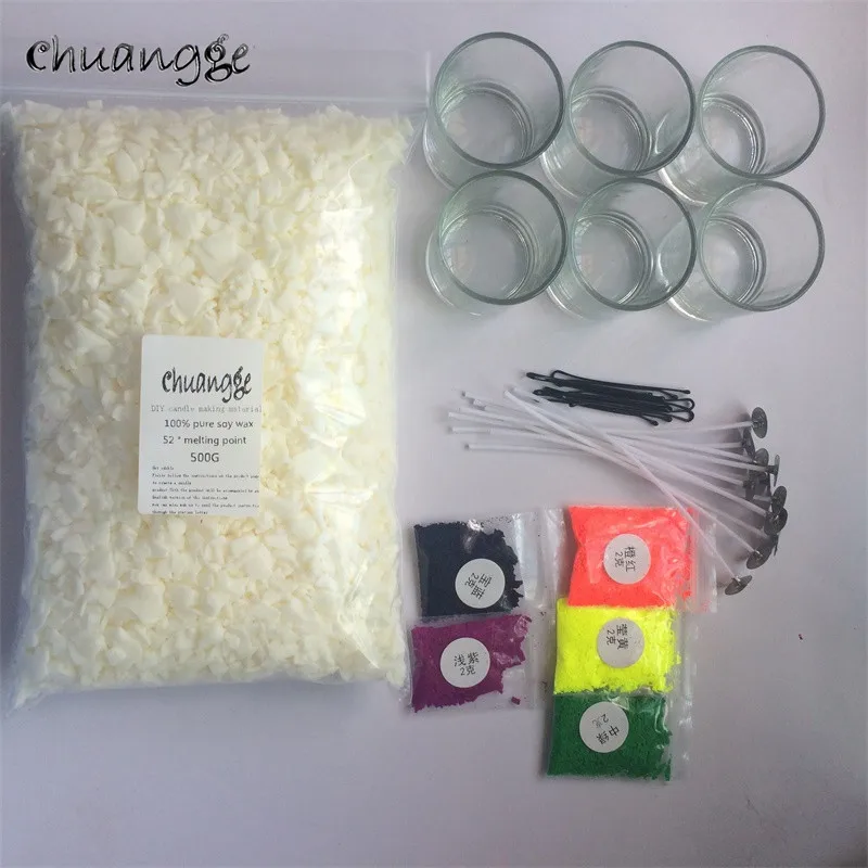 Special Offer CHUANGGE świece sojowe zestawy ręcznie świece zapachowe akcesoria do rękodzieła wosk sojowy Dye knoty szklany kubek materiały do majsterkowania parafina Discount 33% Today!