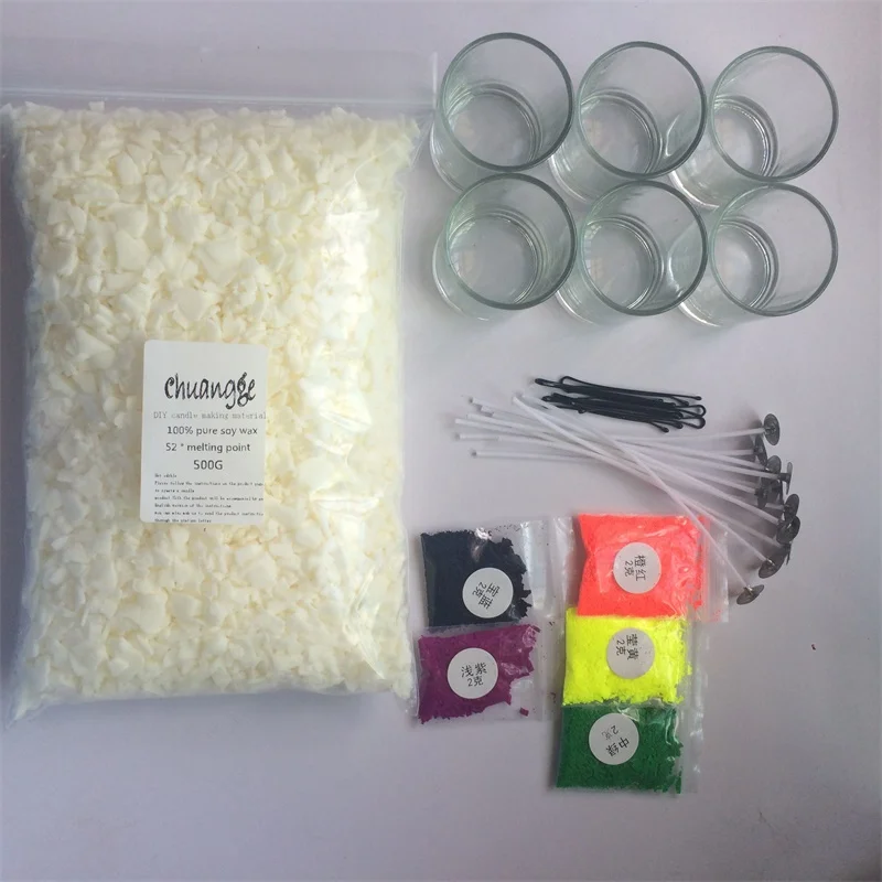 Product Name: CHUANGGE świece sojowe zestawy ręcznie świece zapachowe akcesoria do rękodzieła wosk sojowy Dye knoty szklany kubek materiały do majsterkowania parafina