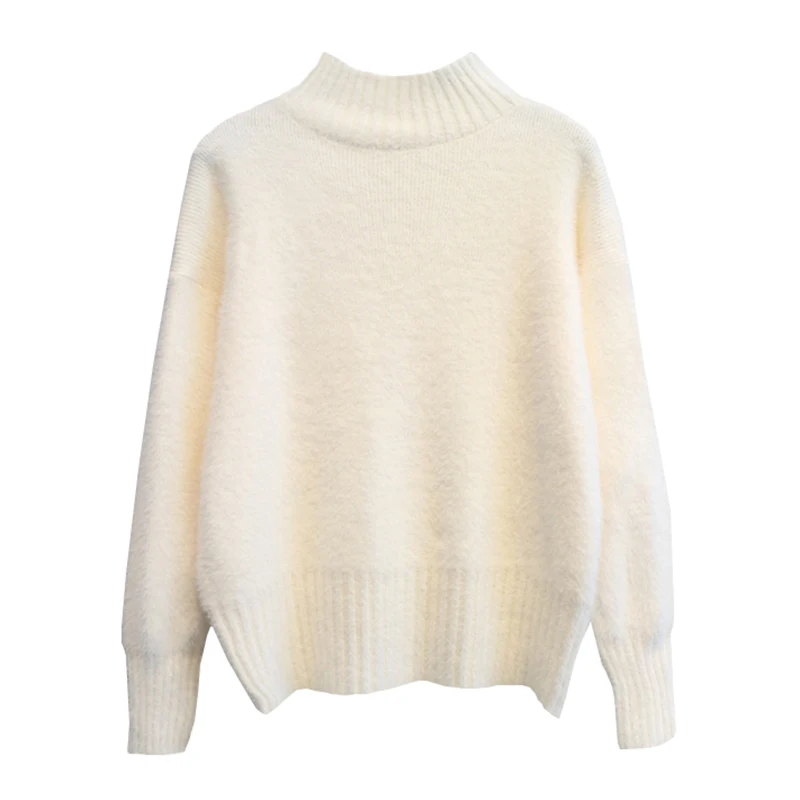 Product Name: H. SA jesienno zimowa damska Pull Femme półgolf moherowe miękkie ciepłe swetry z bufkami cukierki kolor biały gruby ciepły zimowy sweter