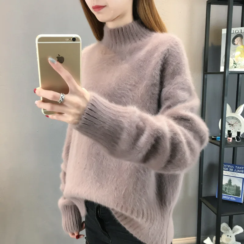 Special Offer H. SA jesienno zimowa damska Pull Femme półgolf moherowe miękkie ciepłe swetry z bufkami cukierki kolor biały gruby ciepły zimowy sweter Discount 38% Today!