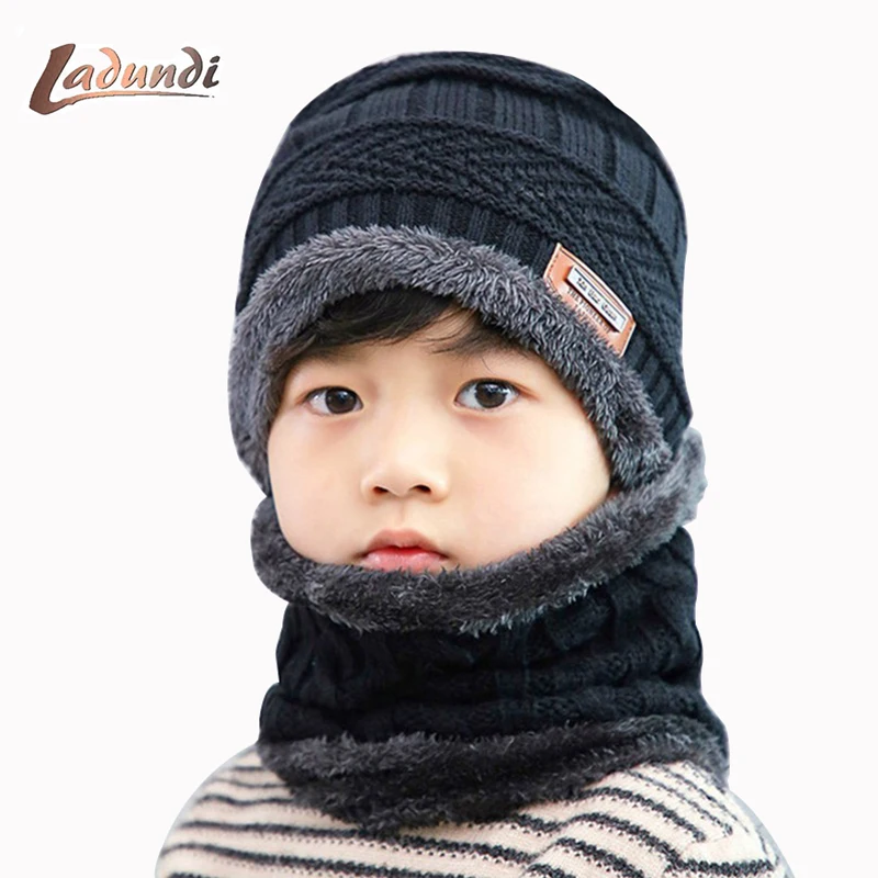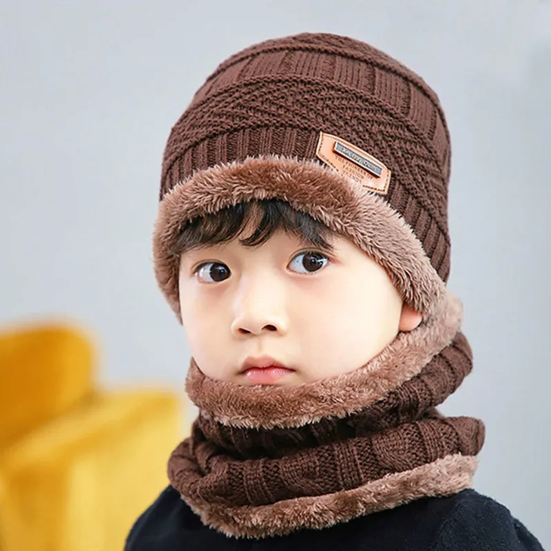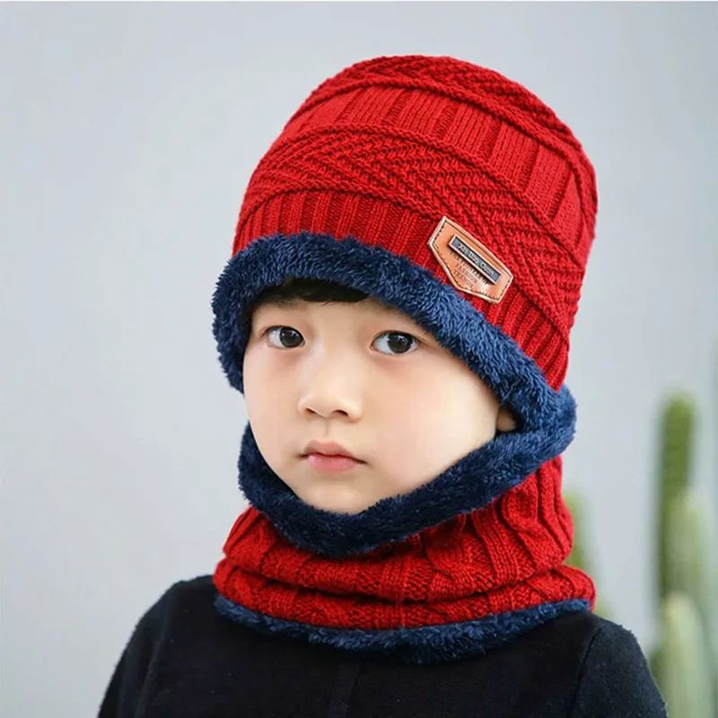 Special Offer Marka dziecięca czapka z dzianiny szalik garnitur zimowy śliczny miękki kapelusz szalik ciepły plus aksamitne pogrubienie z łbem casual odzież boy girl Discount 50% Today!