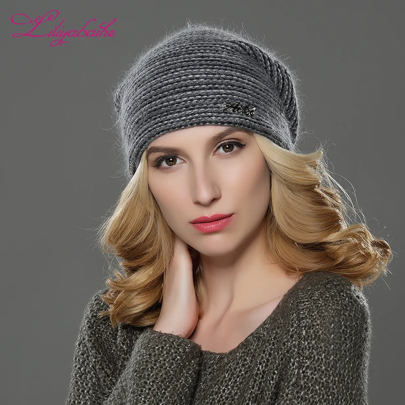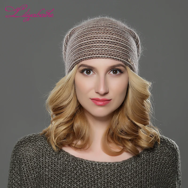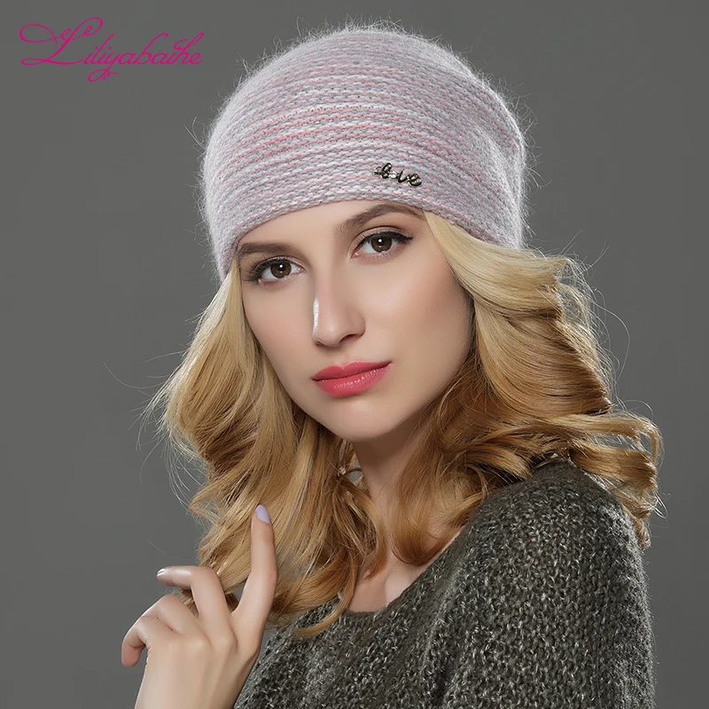 Special Offer LILIYABAIHE w nowym stylu kobiety czapki zimowe czapki z dzianiny wełny angora paski kapelusze wykwintne list dekoracji czapka podwójna ciepła czapka Discount 0% Today!