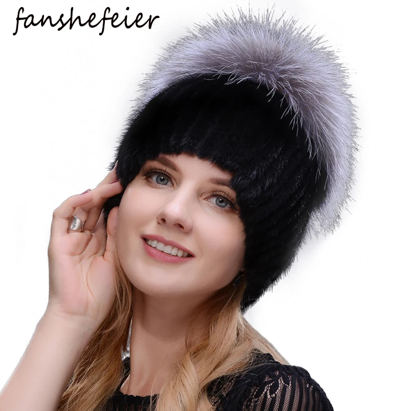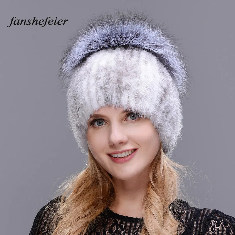 Special Offer Fanshefeier prawdziwe futro srebrnego lisa czapki rosyjski zimowe ciepłe moda wysokiej jakości czapki naturalne futro z norek czapki dla kobiet Discount 43% Today!
