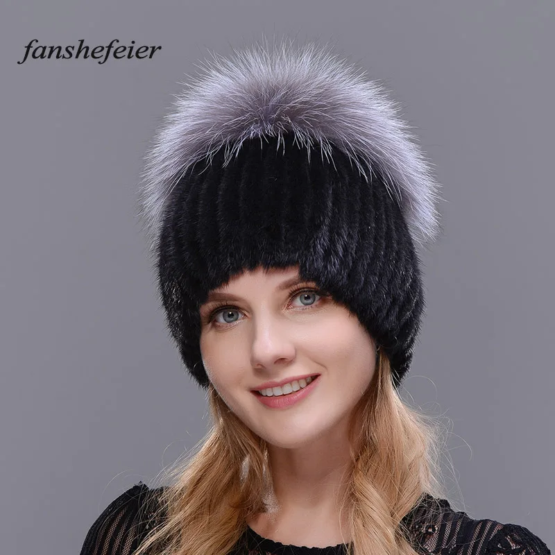 Product Name: Fanshefeier prawdziwe futro srebrnego lisa czapki rosyjski zimowe ciepłe moda wysokiej jakości czapki naturalne futro z norek czapki dla kobiet