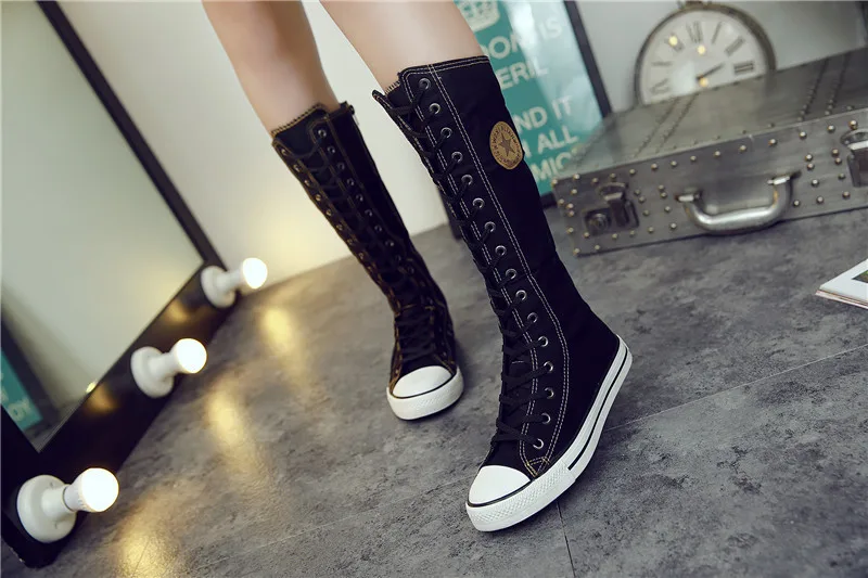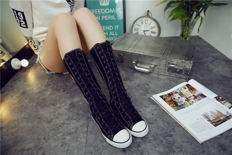 Product Name: LMCAVASUN Plus szie 35 43 2019 moda kobiety buty materiałowe sznurowane Zip kolana wysokie buty kobiety płaskie dorywczo wysokie buty Punk
