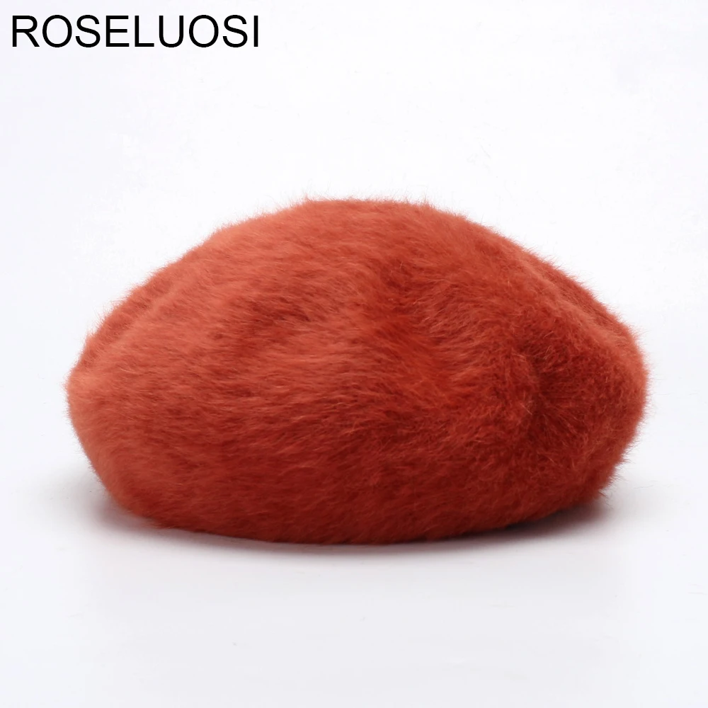 Special Offer ROSELUOSI kobiety futra królika berety jesień zima jednolity kolor ciepły z dzianiny berety kobiet Casequette Discount 0% Today!