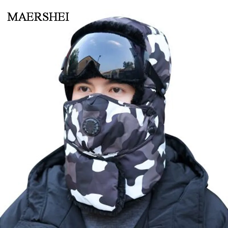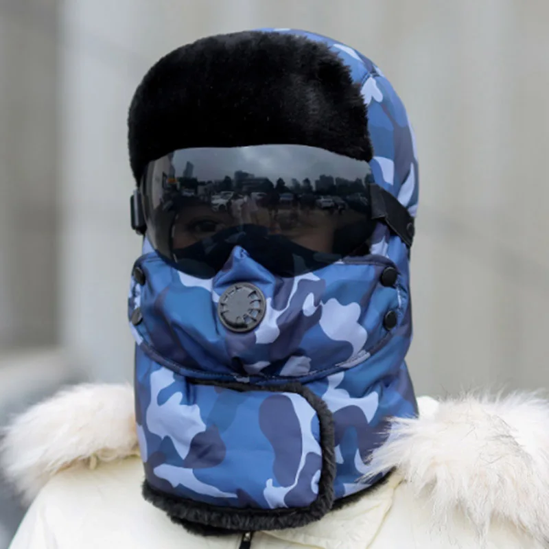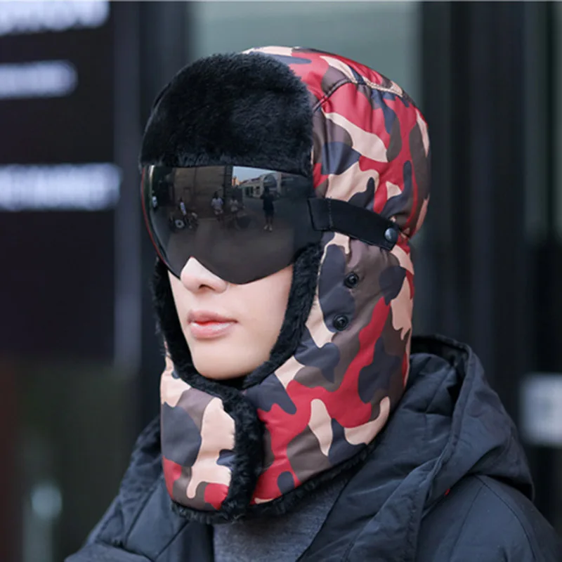 Special Offer Czapki zimowe Bomber pluszowe nauszniki rosyjska uszanka z goglami męskie damskie traper czapka pilotka Faux skórzane futrzane czapki zimowe Discount 41% Today!