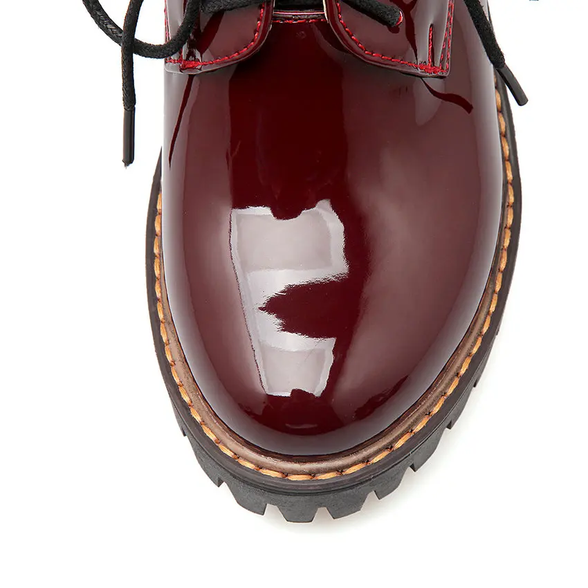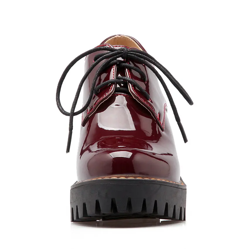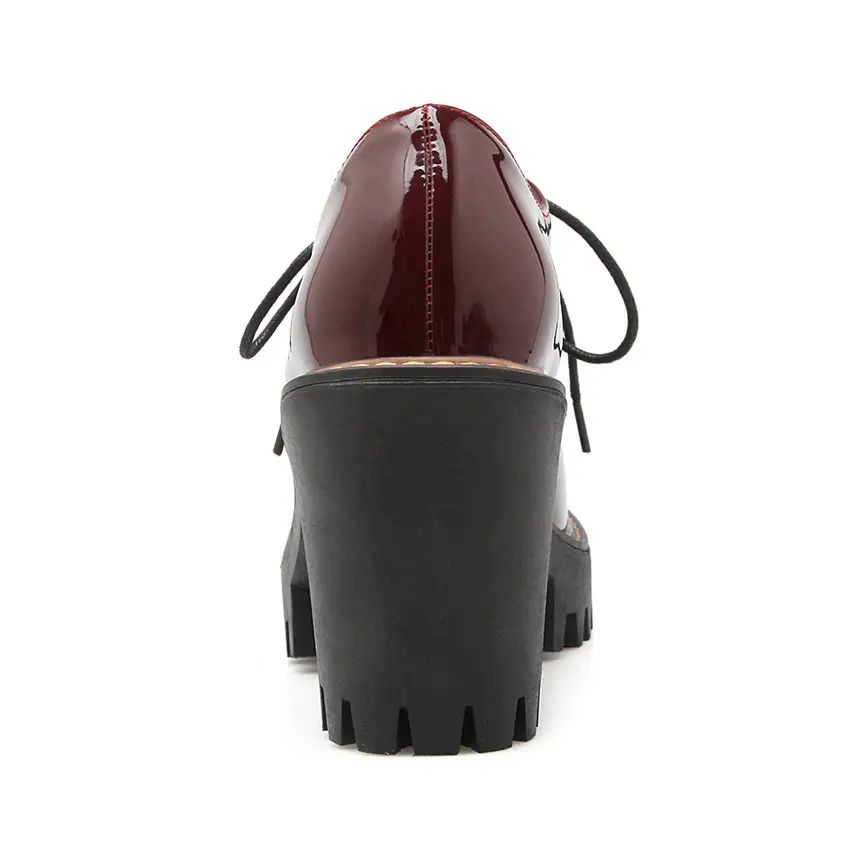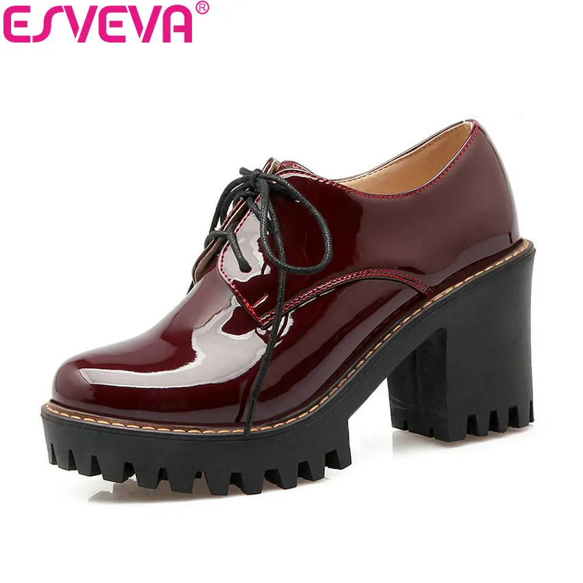 Special Offer ESVEVA 2020 czerwony czarny lakierki kobieta buty gruby wysoki obcas pompy platformy z okrągłym czubkiem pu koronkowe obuwie duży rozmiar 34 43 Discount 49% Today!