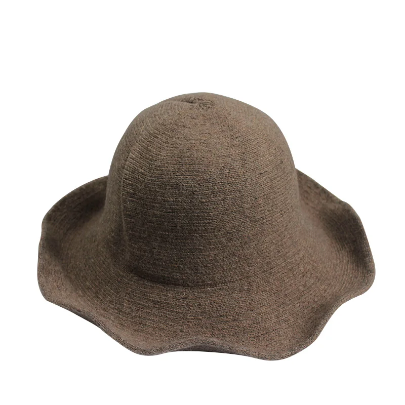 Product Name: Nowa elegancka wełna owcza czapka Knitting Big Brim kapelusz fedora zima gruba kobieta moda akcesoria do kapeluszy zimowych