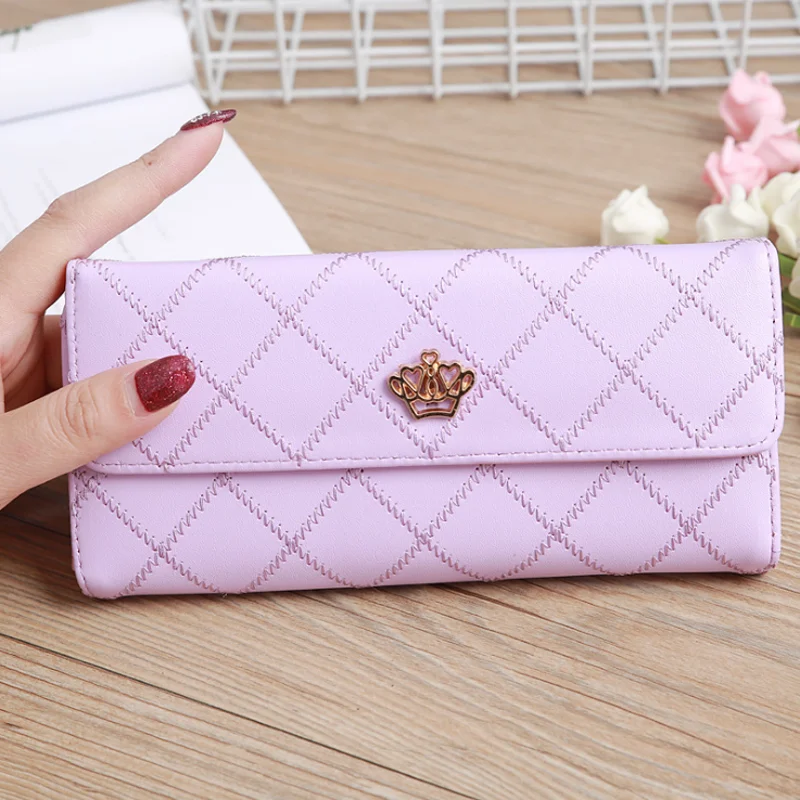 Product Name: Nowa koreańska wersja cukierkowy kolor haftowane korony damskie portfele długie panie gospodarstwa karty etui na dowód