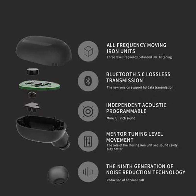 Product Name: Oryginalne słuchawki bezprzewodowe bluetooth 5.0 słuchawki słuchawki stereo hifi słuchawki sportowe zestaw słuchawkowy z redukcją szumów wodoodporne słuchawki douszne zasilania LED