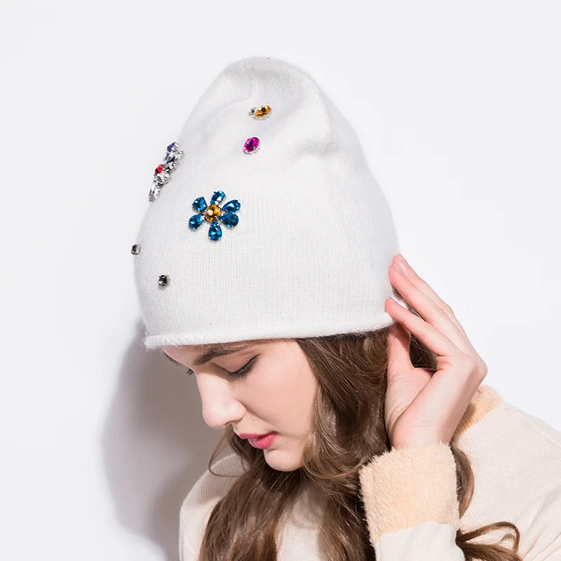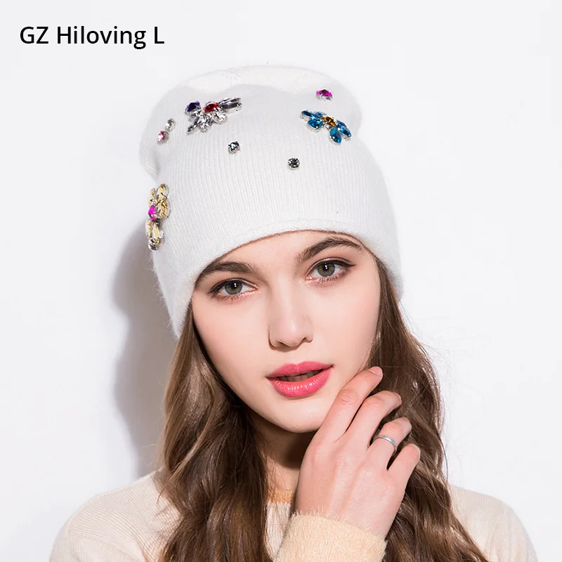 Special Offer GZHilovingL nowy dobrej jakości jesień zima diamentowe czapki solidna miękka ciepła wełna kobiet dzianiny Skullies Beanie Cap dziewczyna kapelusz Discount 35% Today!