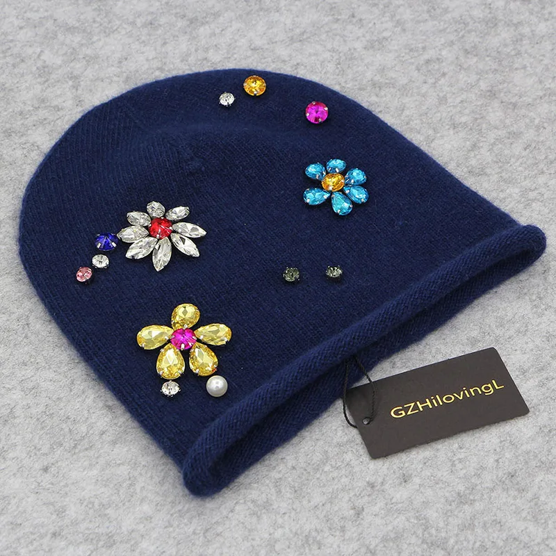 Product Name: GZHilovingL nowy dobrej jakości jesień zima diamentowe czapki solidna miękka ciepła wełna kobiet dzianiny Skullies Beanie Cap dziewczyna kapelusz