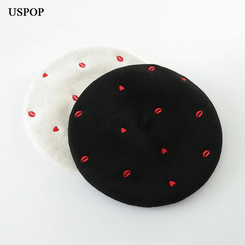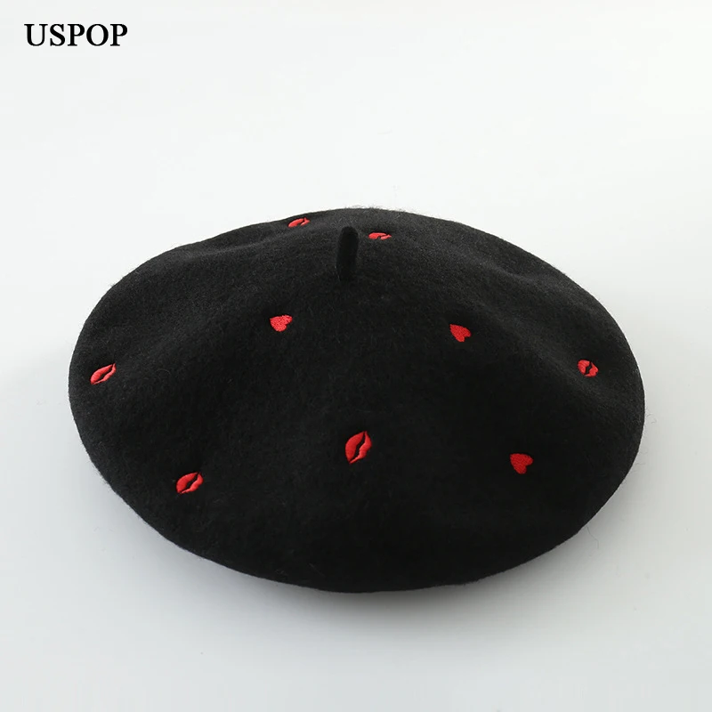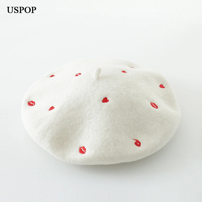 Special Offer USPOP czapka zimowa dla kobiet 100% wełniany beret moda wyszywane serce beret czapka kobiet grube ciepła, z wełny kapelusz Discount 37% Today!