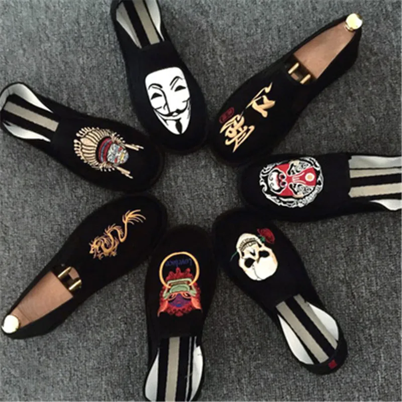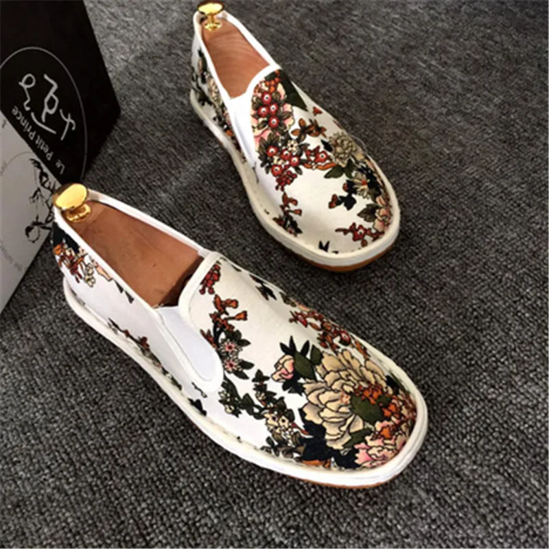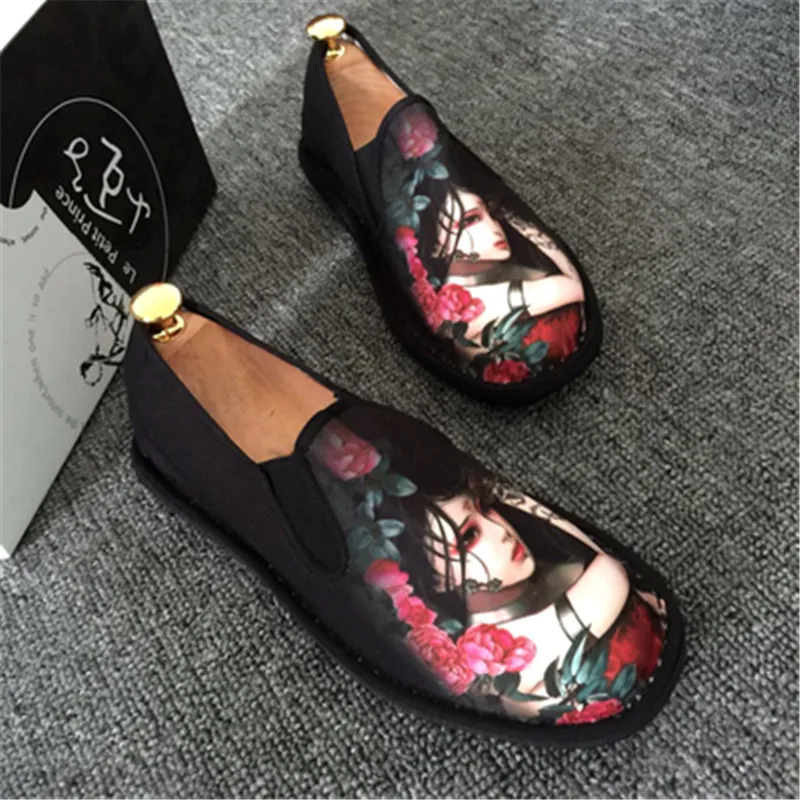Product Name: Wiosenne modne buty na niskim obcasie espadryle mokasyny lekkie wytrzymałe 2019 mężczyzna kobiet płótno Harajuku gumowe płótno haftować buty