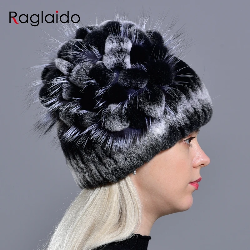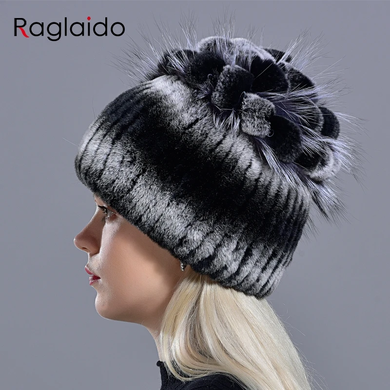 Special Offer Czapka zimowa z futra naturalnego królik rex damska czapka z daszkiem nowość dzianinowa stylowa modna oryginalna lisa kwiatowa damska czapka z futra Discount 40% Today!