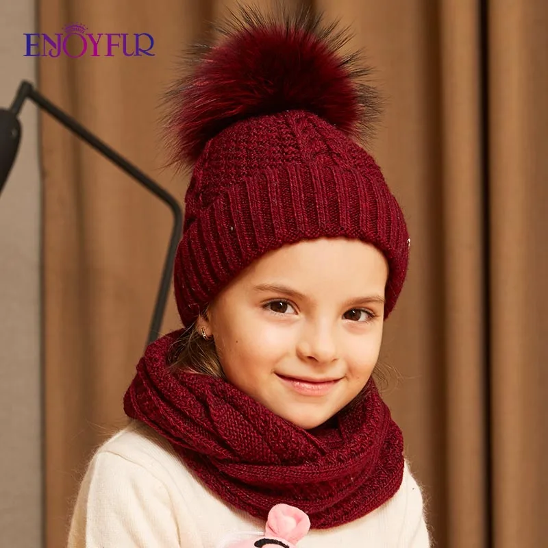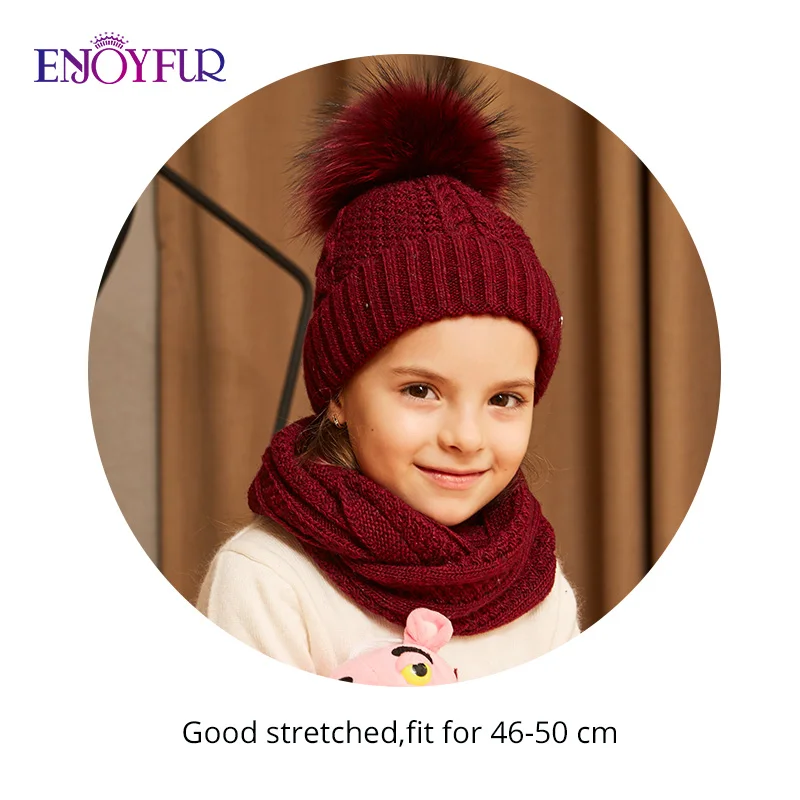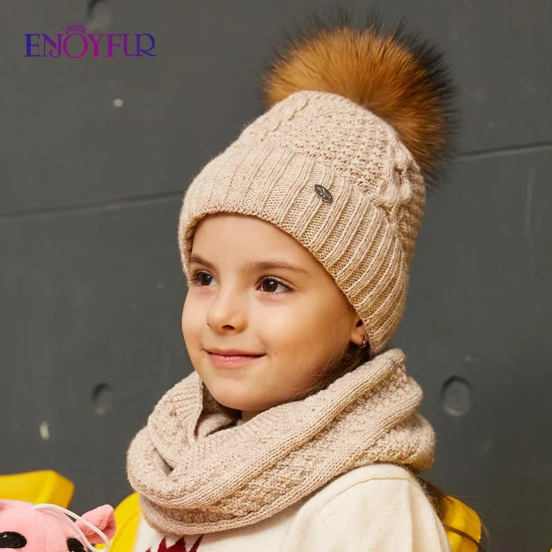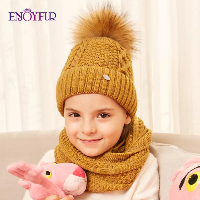 Special Offer ENJOYFUR czapka zimowa i zestaw szalików dla dziewczyn wysokiej jakości bawełniane z dzianiny miękki kapelusz dziewczyna gruby chłopiec dla dzieci czapki dla dzieci ciepła czapka zestaw Discount 46% Today!