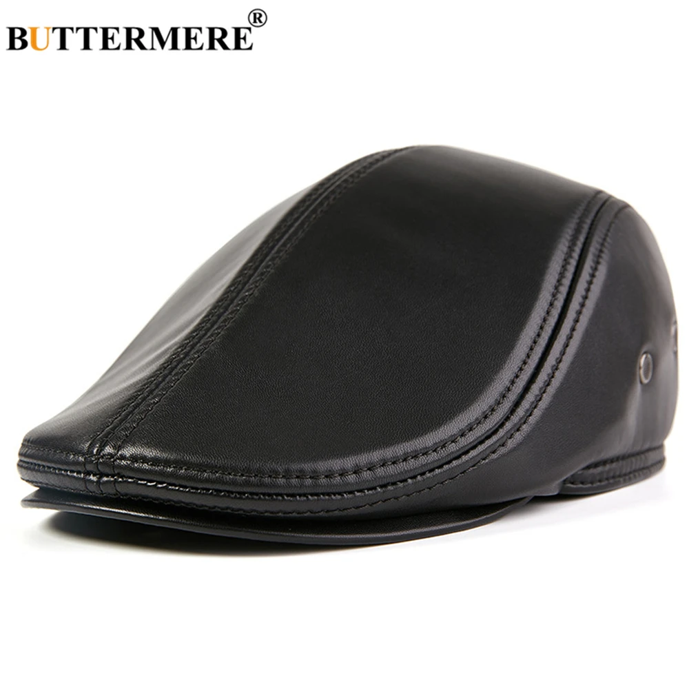 Special Offer BUTTERMERE mężczyźni płaska czapka kożuch prawdziwa skóra Gatsby czapka mężczyzna królewski niebieski jesień Winer Earflaps męska kaczuszka bluszcz Cap Discount 49% Today!