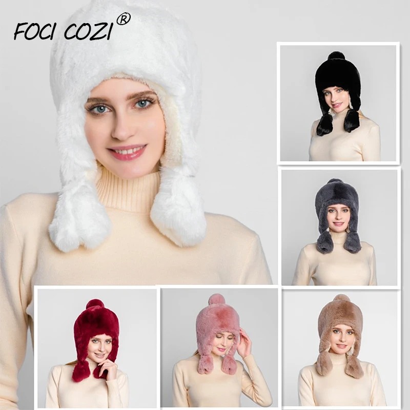 Special Offer Trending 2019 Fashion różowy czapka zimowa z króliczym czapka ze sztucznego futra czapka damska z uszami Move Girls Earflap Warm Snow Ski traper Cap Discount 0% Today!