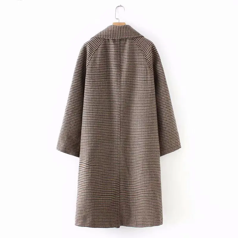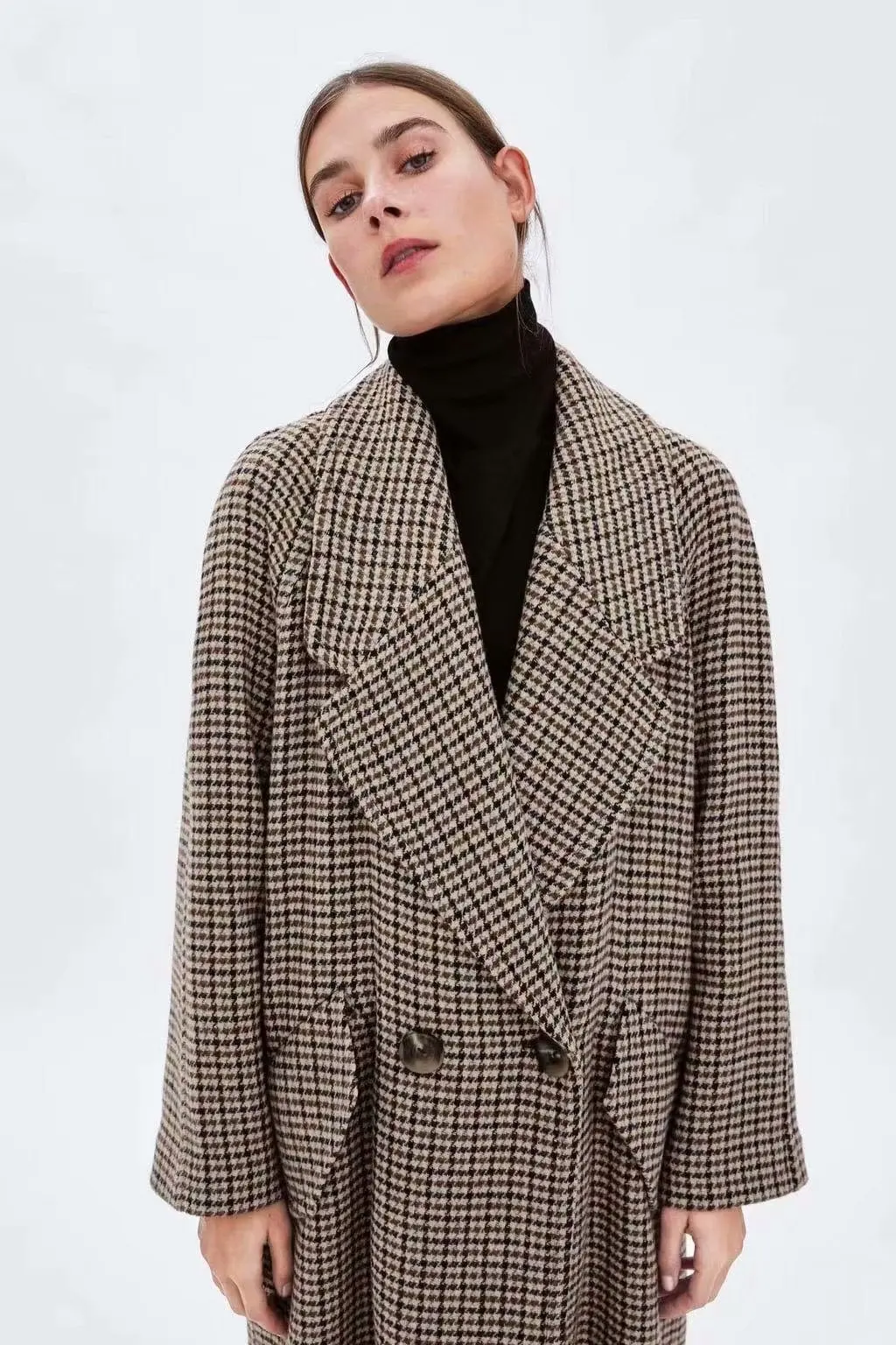 Product Name: Kobiety klasyczny krata płaszcz zimowy klapy podwójne piersi wełniany długi płaszcz